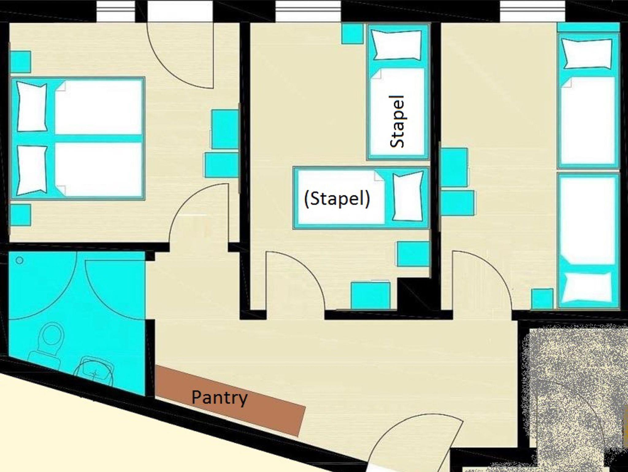 Ein Doppelzimmer mit Doppelbett (180x200; getrennte Matratzen) und Zugang zum Balkon. Das Gästezimmer ist über die Außentreppe und Galerie zu erreichen, auch direkt über den eigenen Balkon.