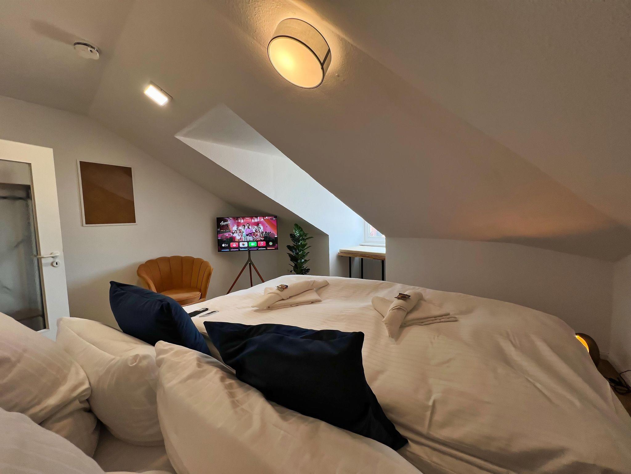 Die Wohnung verfügt über 2 Betten, beide Zimmer haben ein 1,80 x 2,00 m großes Boxspringbett und Smart-TV.