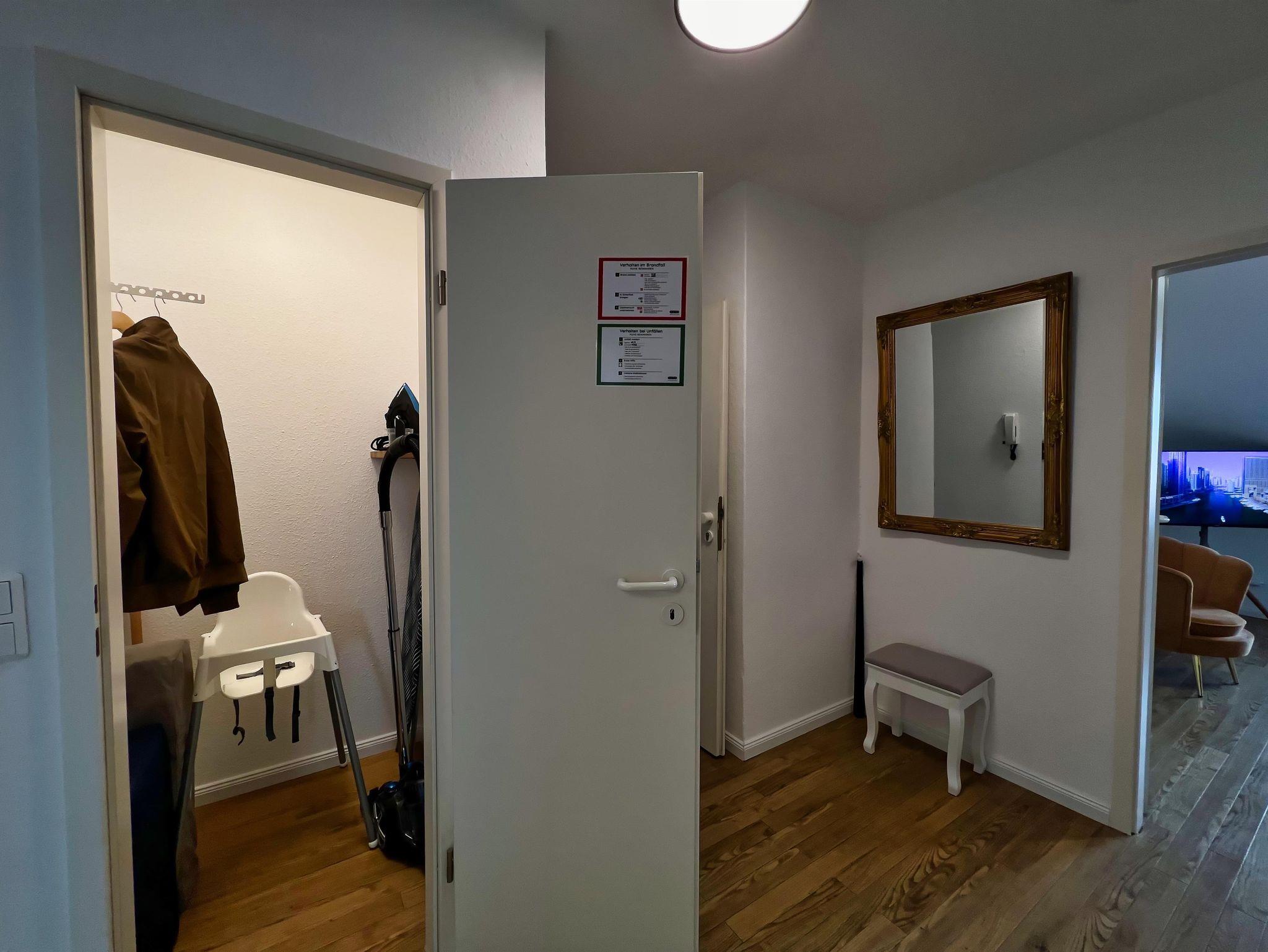 Der Zugang ist schlüssellos über elektronische Schlösser. Für Deinen Aufenthalt hast Du zwei PINs von uns erhalten: einen PIN (9-stellig) für die Haustür und einen PIN (6-stellig) für die Wohnung.