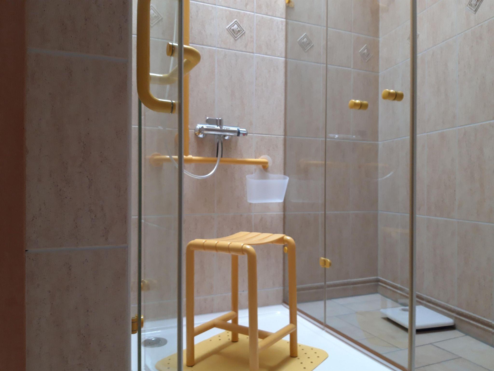 Bungalow und Terrasse sind schwellenlos. Vom Wohn- und Schlafzimmer gelangen Sie auf die geräumige Terrasse. Damit sich auch etwas lägere Gäste wohlfühlen, sind alle Türen 2,10 m hoch. Das Doppelbett ist 1,60 m breit und 2,20 m lang. Für mitgebrachte Fahrräder steht eine verschließbare Box im oberen Grundstücksbereich bereit. Gäste- WLAN ist vorhanden. Bettwäsche und Handtücher sind inklusive.
