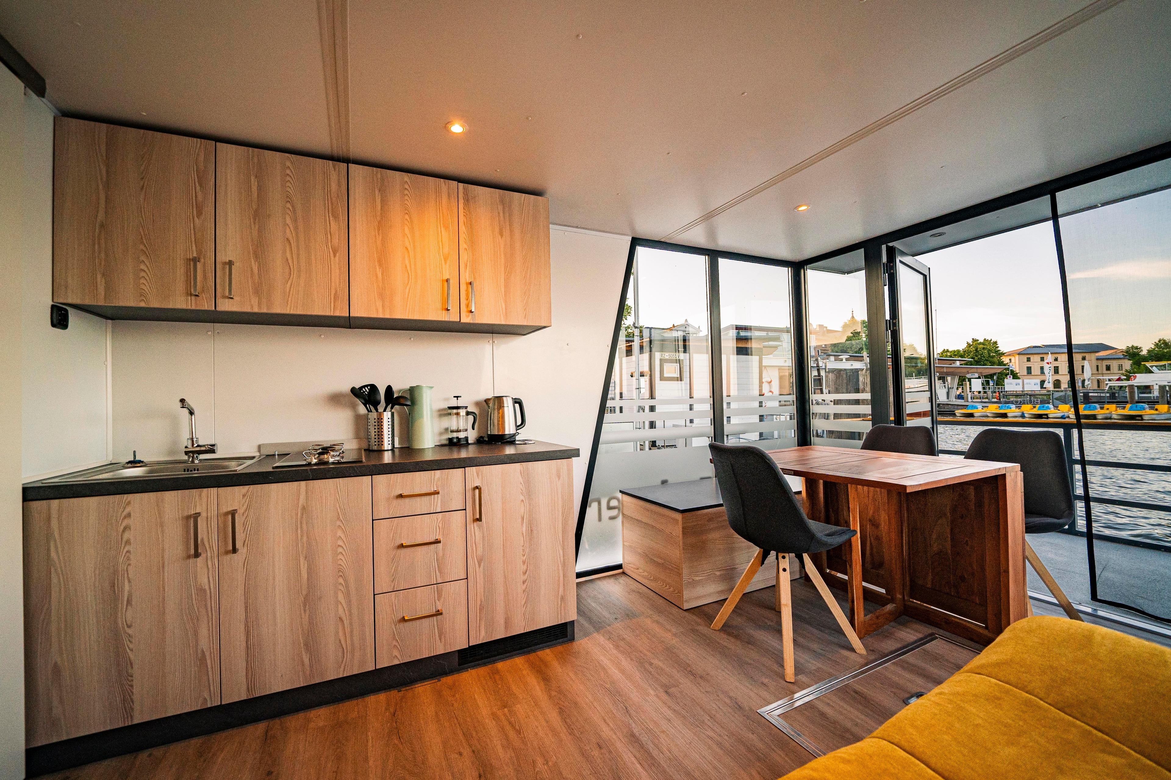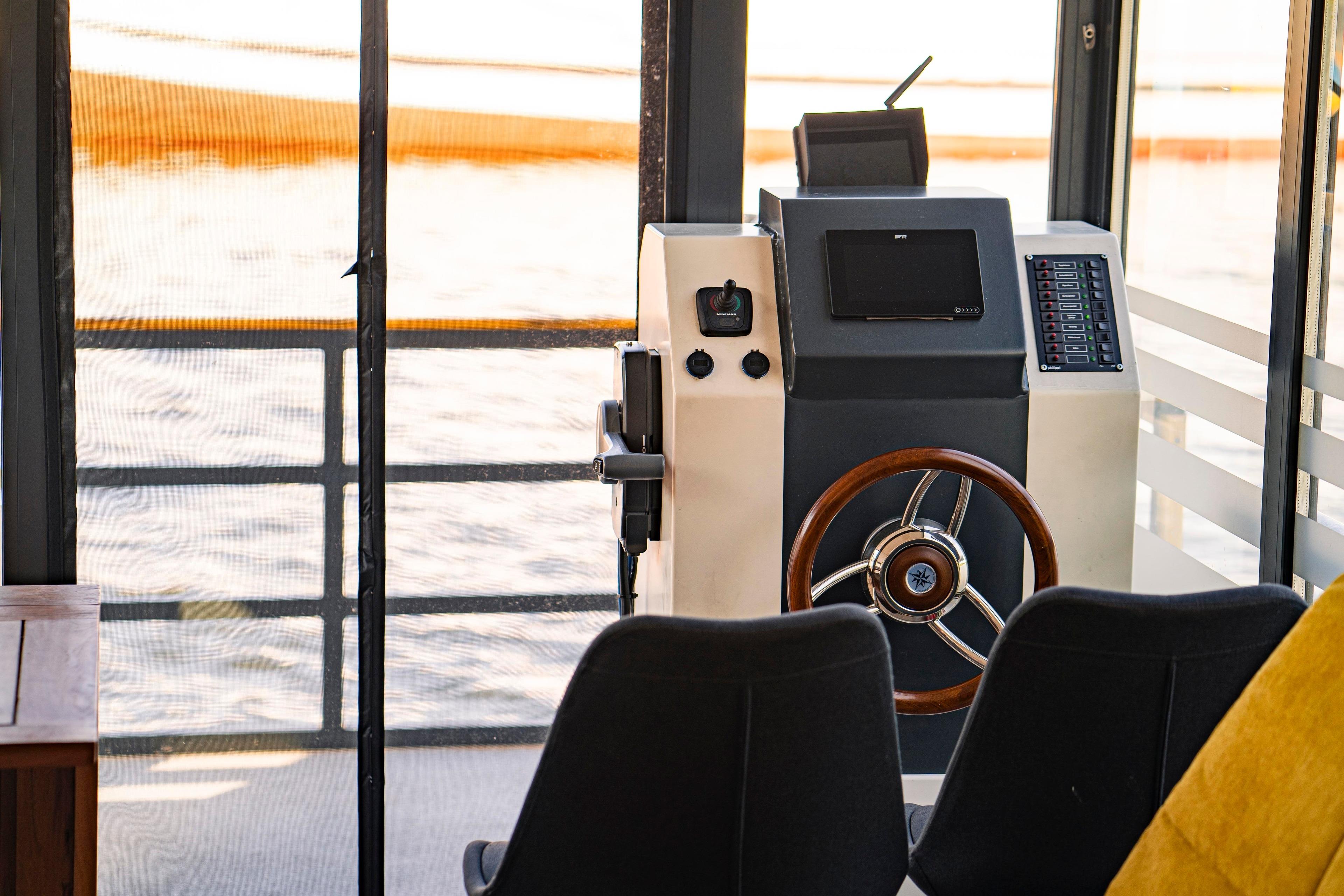 Unser Hausboot bietet Ihnen den Komfort einer Ferienwohnung auf dem Wasser. Aufgrund der Solaranlage können Sie einige Zeit auf dem See verbringen ohne eine Marina anlaufen zu müssen. Das absolute Highlight ist unsere Dachterrasse. Von hier aus können Sie den Sonnenauf- und Sonnenuntergang genießen. In der Küche finden Sie alles was für die Zubereitung eines guten Essens erforderlich ist. Starten Sie Ihr persönliches Abenteuer mit einem der Hausboote