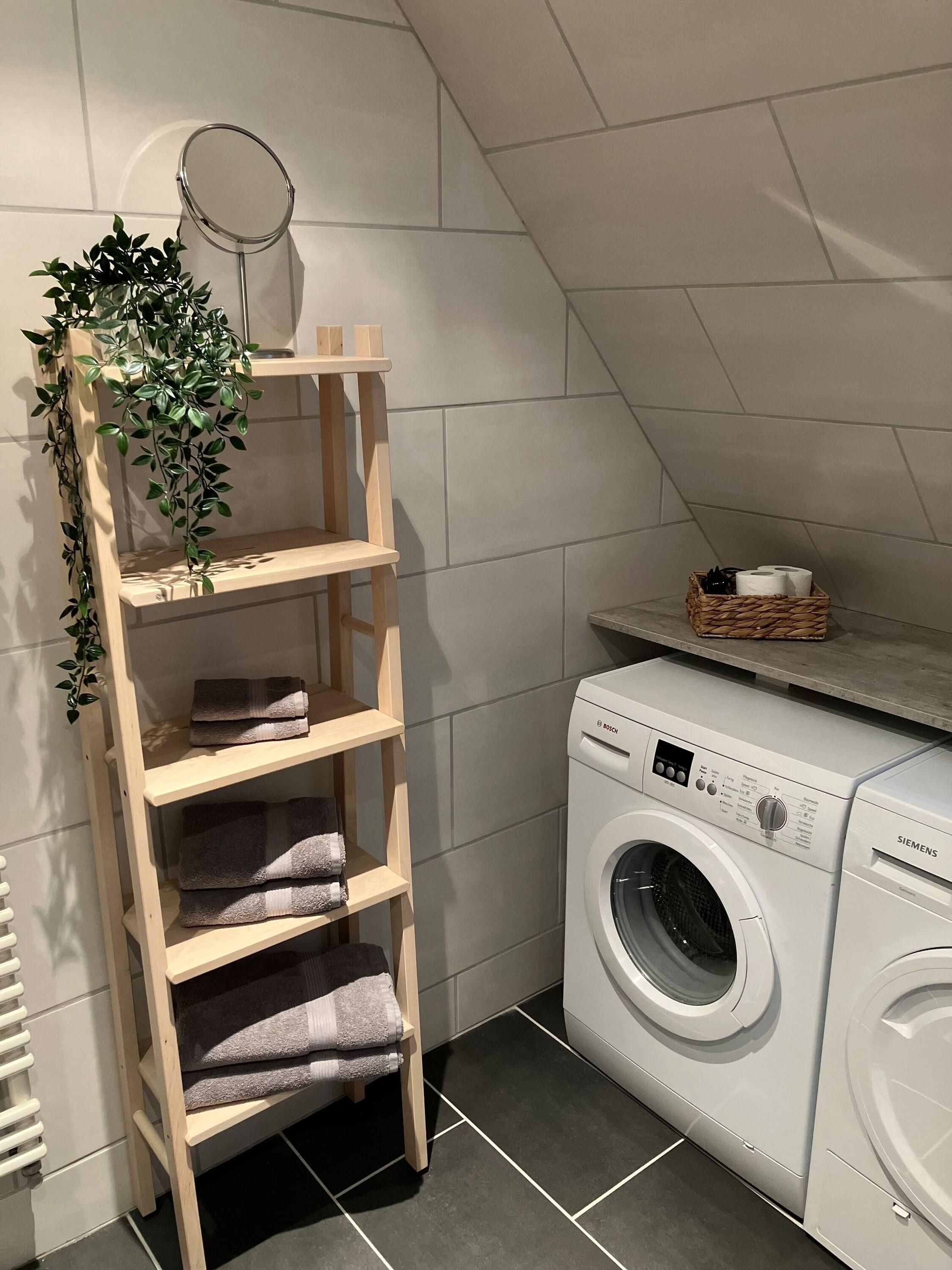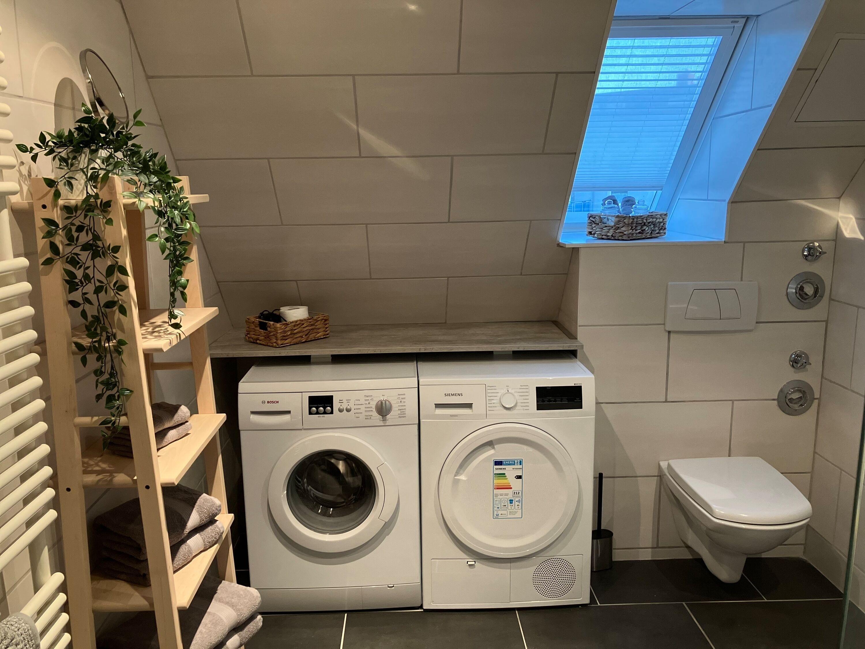 - Duschbad/WC mit Waschmaschine und Trockner, Fön