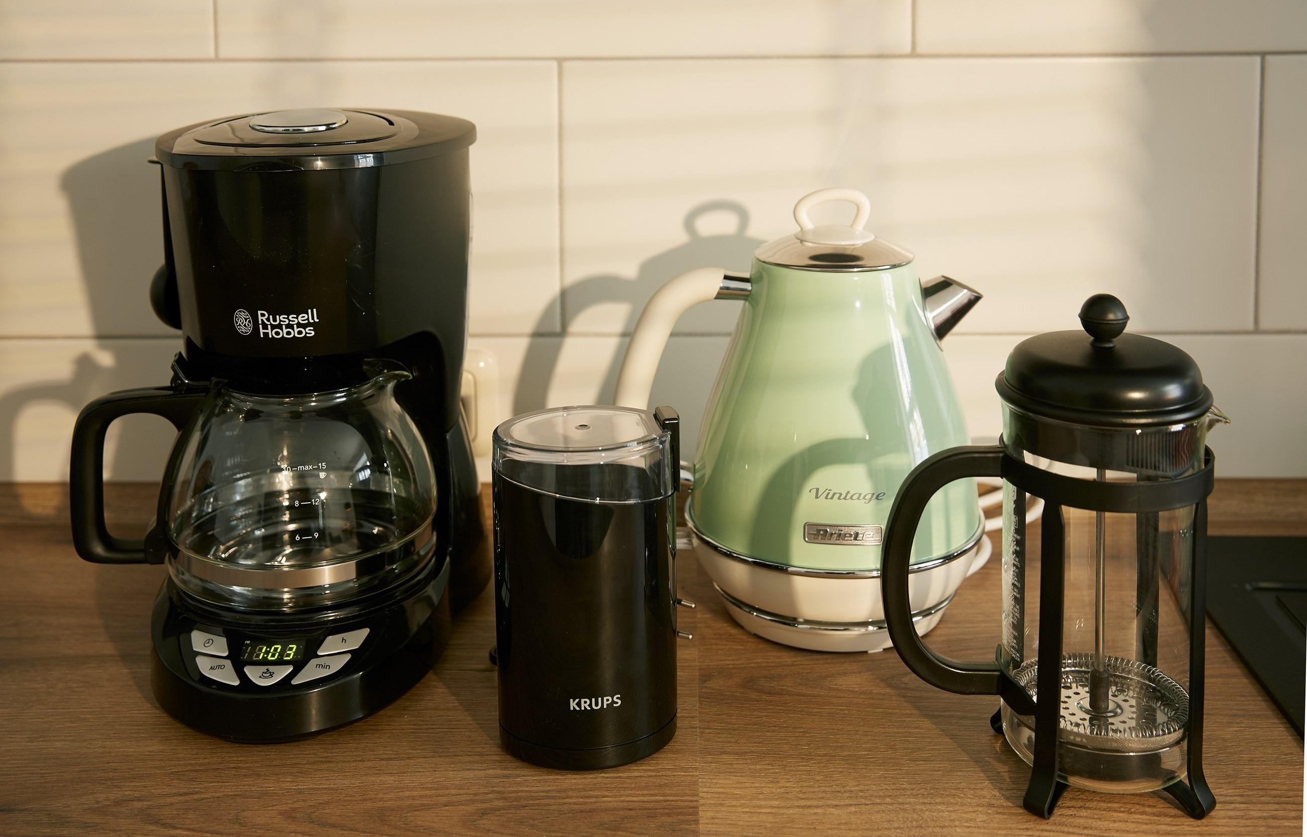 - Voll ausgestattete Küche mit Esstisch, ua. mit Herd, Backofen, Kühlschrank, Geschirrspüler, Kaffeemaschine, Wasserkocher, Toaster, French Coffee u.v.m.