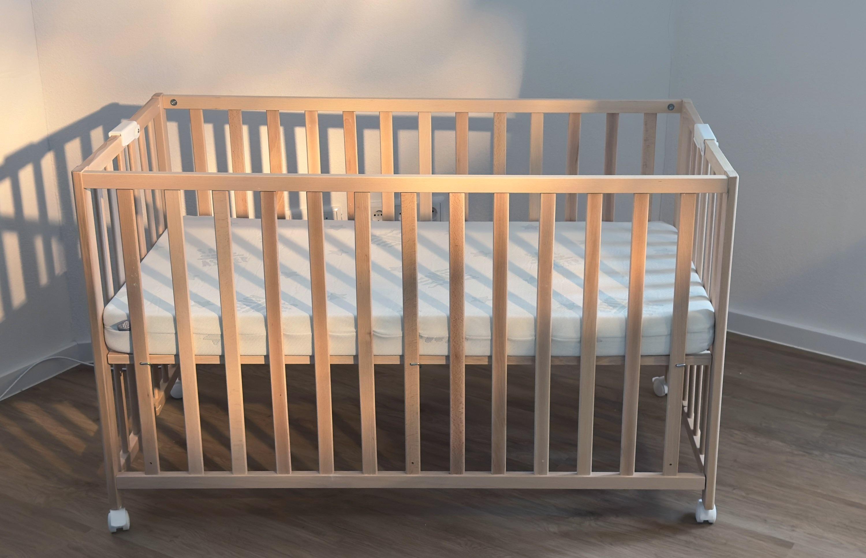 - Gerne stellen wir nach vorheriger Anmeldung vor Anreise ein Kinderbett aus Holz (Das Kinderbett wird (!)ohne Decke und Kissen bereitgestellt. Matratze und Laken sind beim Bett dabei) und einen Hochstuhl aus Holz zur Verfügung