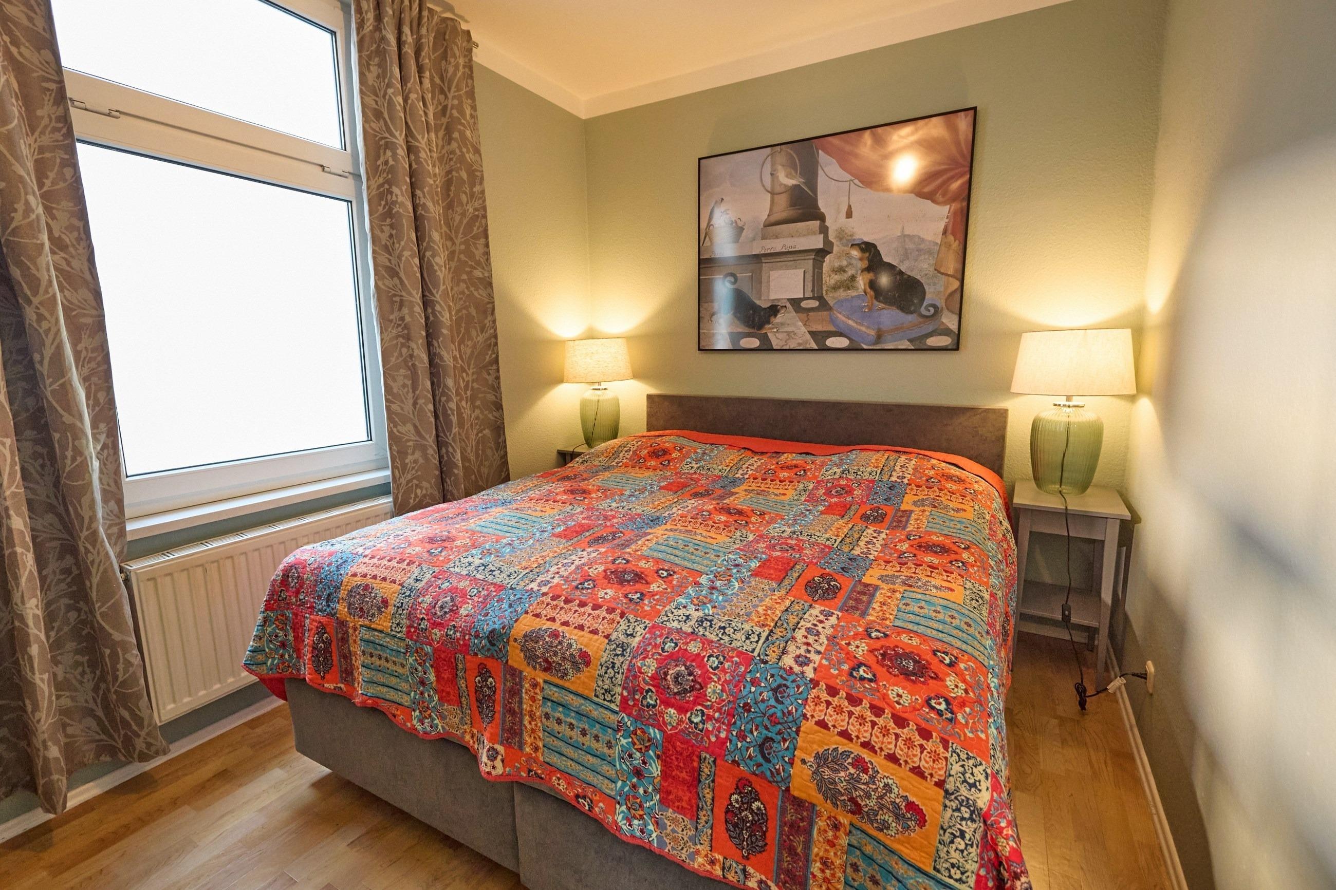 Separates Schlafzimmer mit einem gemütlichen Doppelbett (180 x 200 cm)