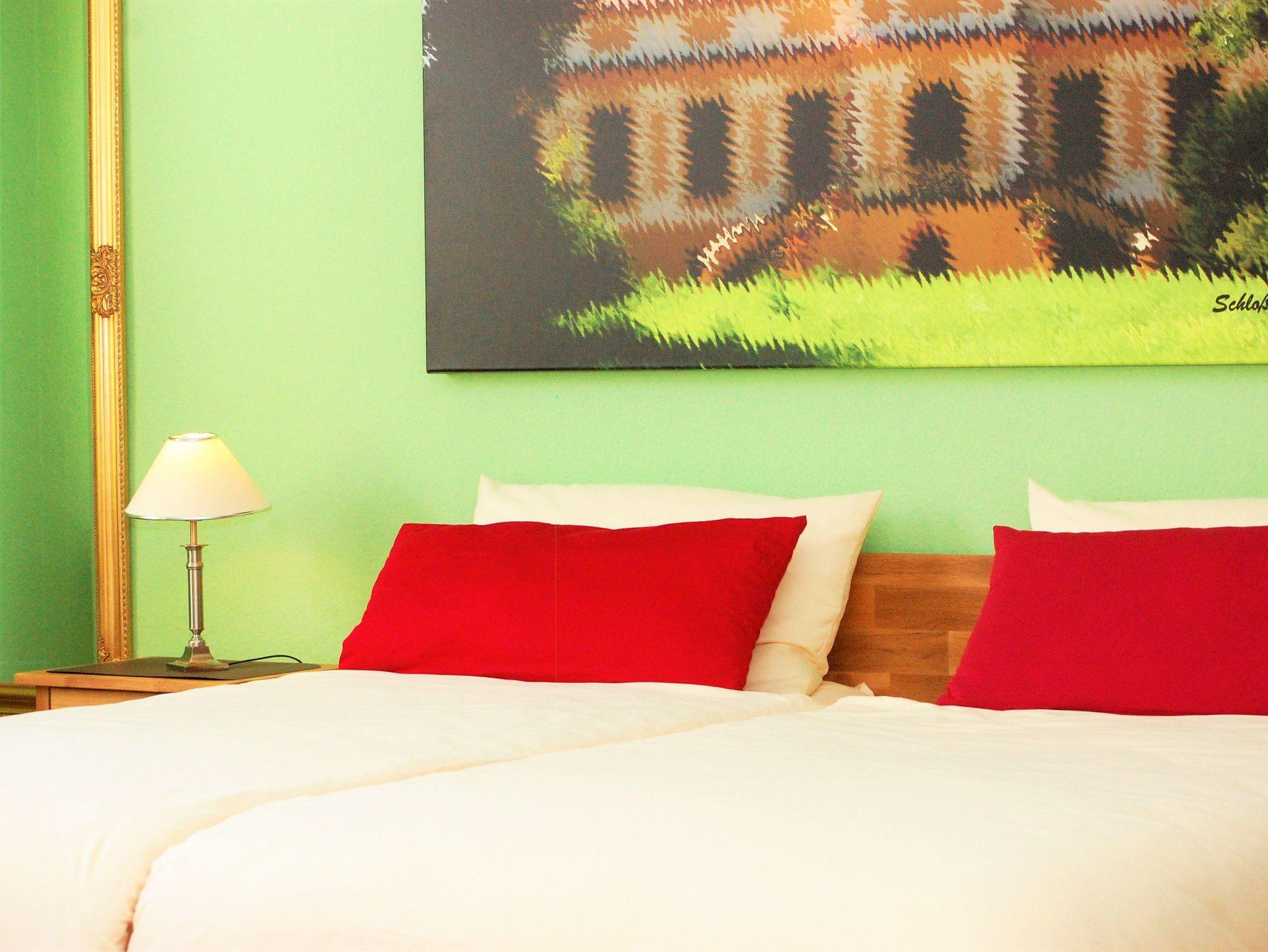 In der 97qm großen Ferienwohnung stehen Ihnen zwei kombinierte Wohn-/Schlafräume, ein Schlafraum, eine eigene Küche, ein eigenes Bad/WC sowie ein Flur zur Verfügung. Die Ferienwohnung beinhaltet auf Anfrage auch einen Kinderhochstuhl sowie ein Kinderreisebett. In der liebevoll eingerichteten Küche befindet sich alles, was das Hausfrauen- bzw. Hausmannherz begehrt, u.a. ein Herd, ein Geschirrspüler, ein Kühlschrank, eine Mikrowelle, eine Sitzecke mit großem Tisch sowie auch Handtüchern.