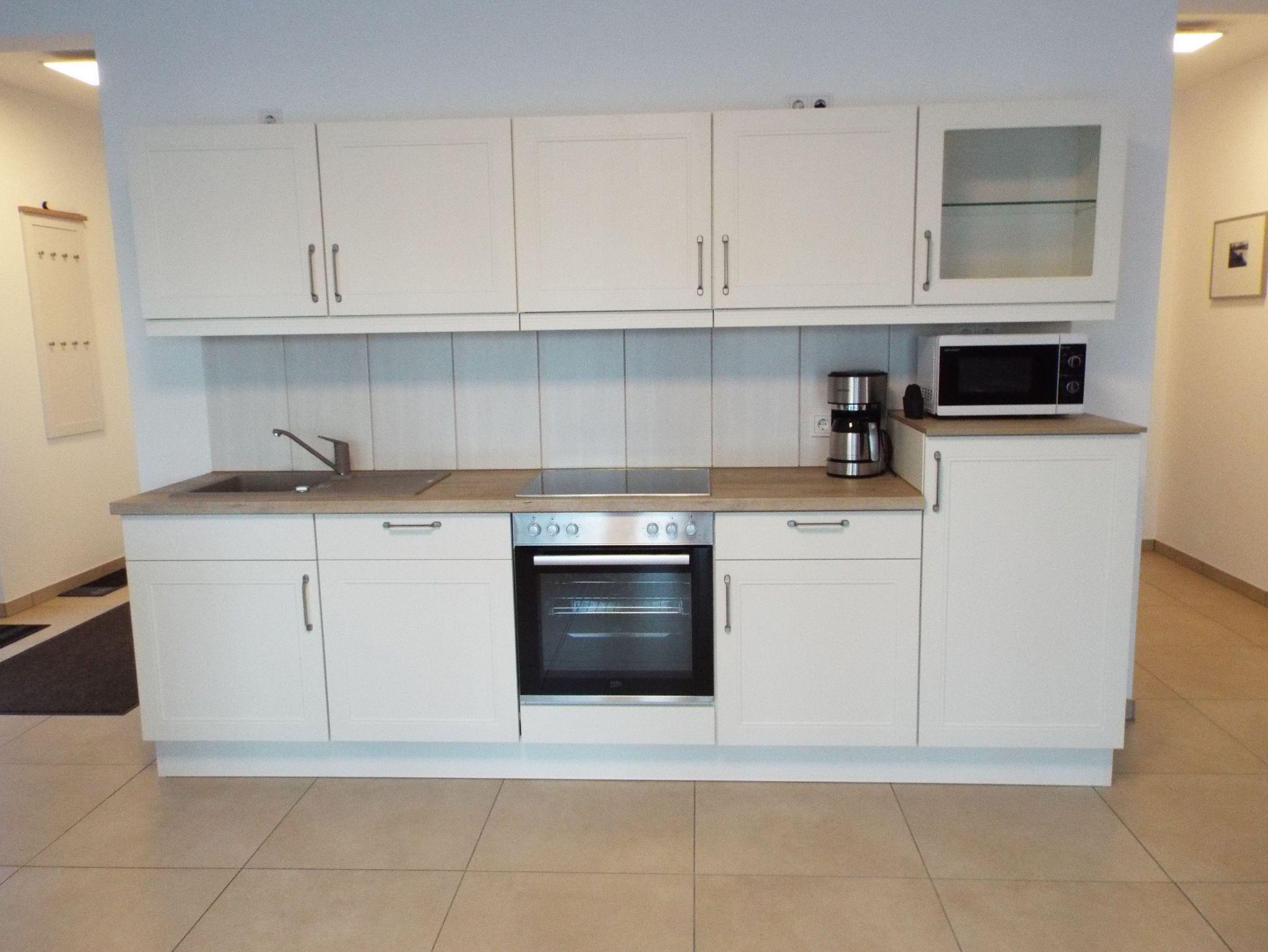Die Ferienwohnung 3 ist ebenerdig und barrierefrei konzipiert und ist großzügige 70 qm groß. Sie lädt mit ihrer modernen Einrichtung und den warmen Farben zum Erholen und Entspannen ein. Die Wohnungen wurden mit viel Liebe hochwertig eingerichtet. Im großzügigen Wohnbereich finden Sie eine gemütliche Sitzecke mit einem 2-Sitzer und einem extra Sessel; natürlich auch einen Couchtisch. Hier findet sich auch der Flachbild-TV. In der offenen Landhausküche müssen Sie auf Nichts verzichten. Es gibt einen Elektroherd, einen Kühlschrank mit Gefrierfach, einen Geschirrspüler, eine Mikrowelle, eine Kaffeemaschine und auch einen Wasserkocher. Sie finden hier alles vor, was Sie zum Wohlfühlen und Kochen benötigen.