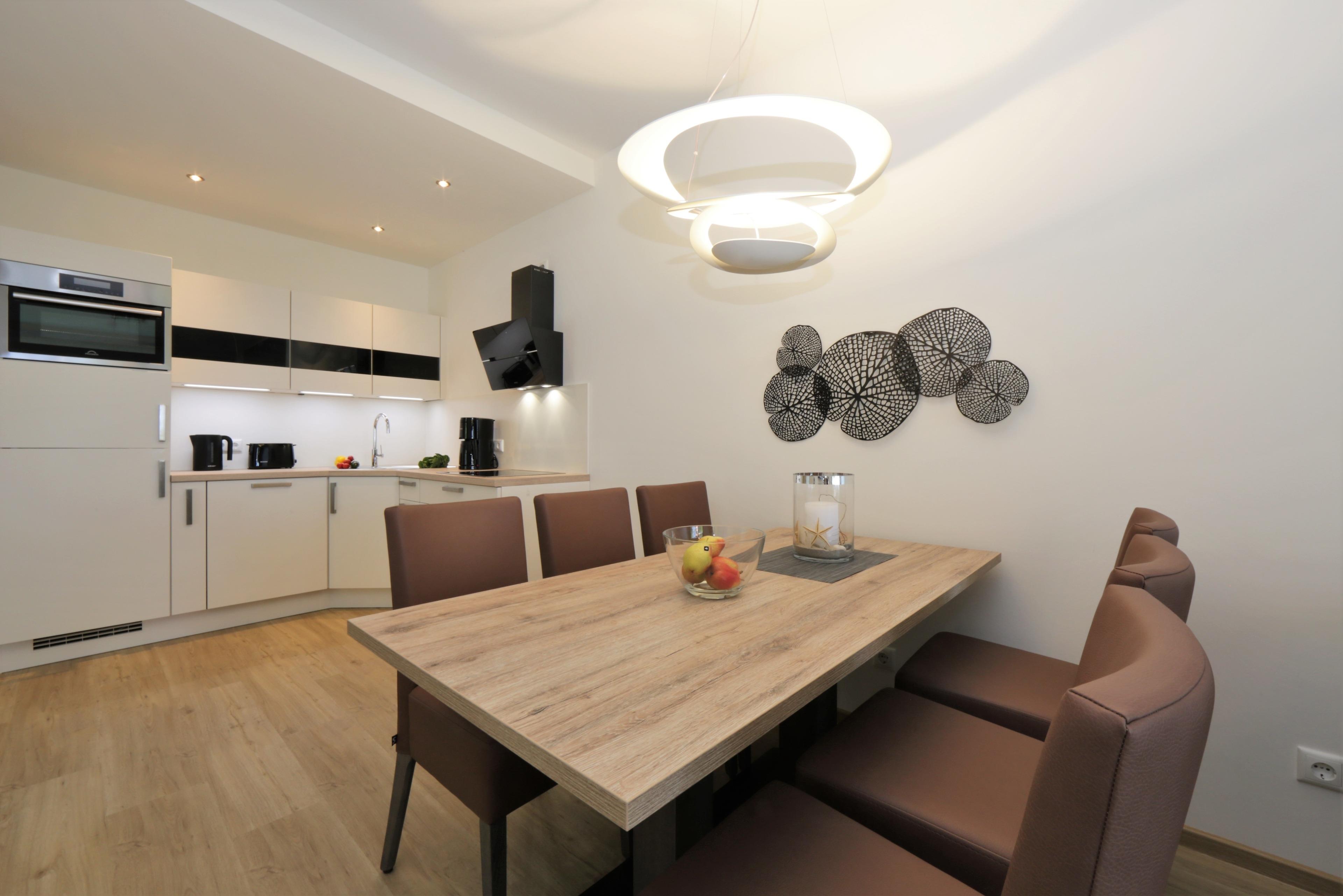 Diese moderne und mit viel Liebe zum Detail eingerichtete 3-Zimmer Wohnung ist 62 qm groß und liegt im Erdgeschoss. Sie bietet für bis zu 4 Erwachsenen und 2 Kindern Platz für einen erholsamen Ostseeaufenthalt direkt am Meer. Der charmant eingerichtete Wohnraum verfügt über eine gemütliche Sitzgruppe mit Sofa (Liegefläche 160 x 200) und Flat TV. Der Essplatz und die Küchenzeile incl. Geschirrspüler, Ceranfeld, Backofen, Mikrowelle, Kühlschrank etc. sind offen im hinteren Bereich des Wohnraums integriert. Auf der überdachten Terrasse zum Osten genießen Sie ihr Frühstück schon im Freien und haben die Promenade im Blick und auch ein wenig das Meer. Die Schlafzimmer sind jeweils mit einem komfortablen Boxspringbett mit getrennten Matratzen (90 x 200), ausreichend Schrankraum und einem zusätzlichen TV eingerichtet. Das großzügige, moderne Bad ist mit einer ebenerdigen Dusche und Waschtisch/WC ausgestattet.