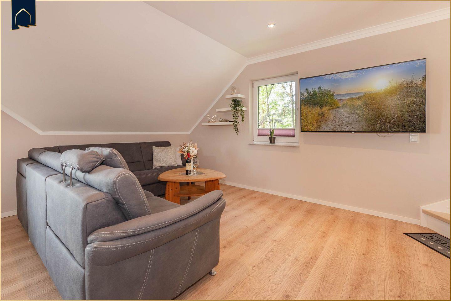 Der feinsandige Ostseestrand ist nur 1.200?m entfernt und bequem mit dem Fahrrad oder Auto erreichbar. In der Umgebung erwarten Sie zahlreiche Freizeitmöglichkeiten – von Radtouren durch die Inselnatur über Golfen bis hin zu Wassersport und kulturellen Highlights. Ein Arzt, Bankautomat und ein Supermarkt befinden sich ebenfalls in der Nähe. Zwei private Parkplätze stehen direkt an der Unterkunft zur Verfügung. Ideal für Familien mit Kindern oder Haustieren – hier ist jeder willkommen, der Komfort mit Inselflair verbinden möchte.