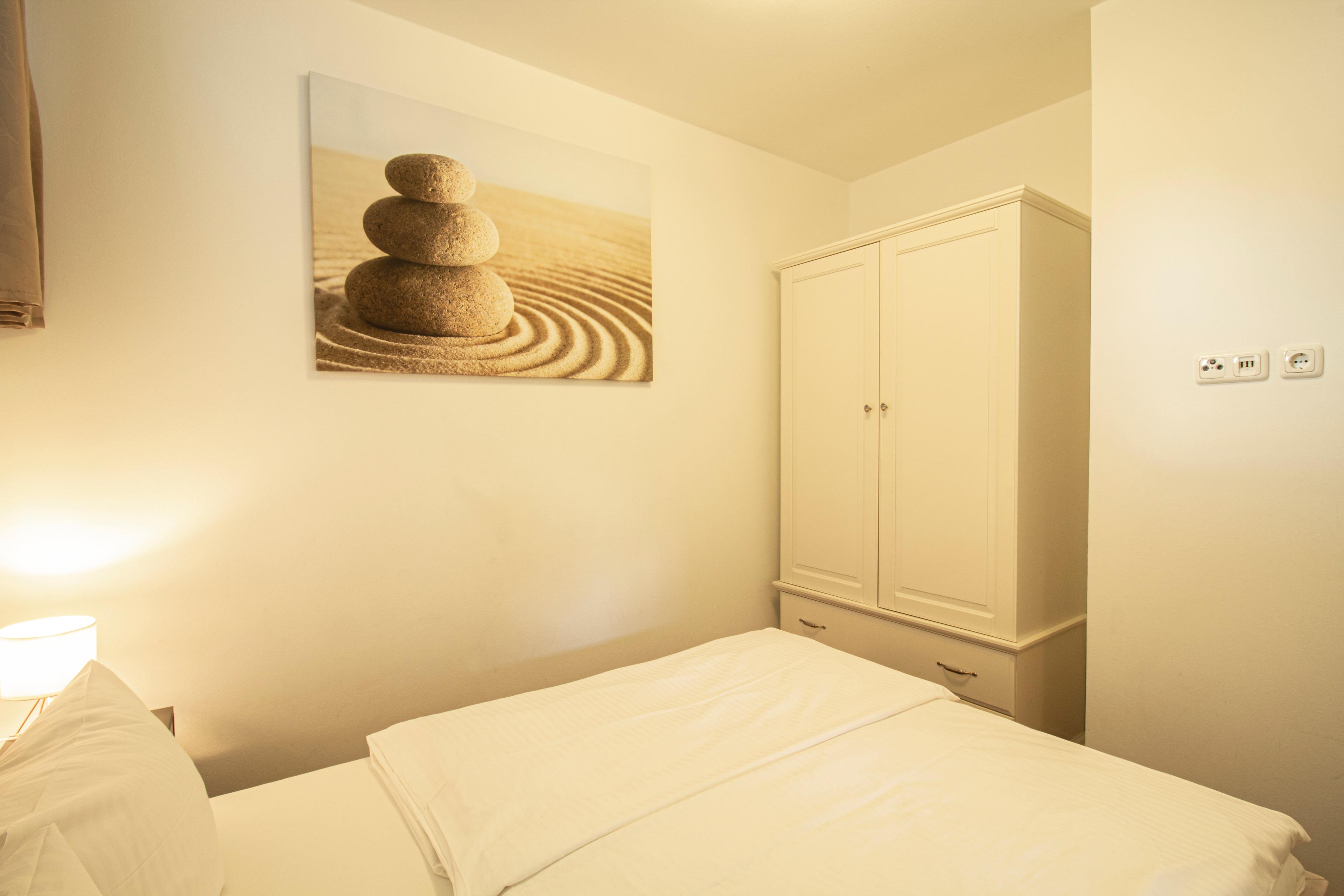 Dieses moderne 3-Zimmer-Appartement befindet sich im 2. Obergeschoss und eignet sich mit seinen 69 m² für maximal 4 Personen. Der lichtdurchflutete Wohnraum ist mit einem gemütlichen Sofa, Sessel und TV eingerichtet. Ebenfalls offen im Wohnraum integriert ist die Vollküche inkl. Backofen, Ceranfeld, Kühlschrank, Mikrowelle, Geschirrspüler etc. und ein großer Essplatz, der zu gemeinsamen Mahlzeiten einlädt. Vom Wohnzimmer gelangen Sie auf die umlaufende Dachterrasse in südöstlicher Ausrichtung, die Sie bereits zum Frühstück ins Freie lockt. Beide Schlafzimmer sind mit einem Doppelbett (140x200 bzw. 160x200) und genügend Schrankraum ausgestattet. Die Dachterrasse zum Südwesten betreten Sie auch über eines der Schlafzimmer. Das komfortable Badezimmer mit Fenster verfügt über eine bodengleiche Dusche mit Echtglasabtrennung und Doppelwaschtisch/WC.