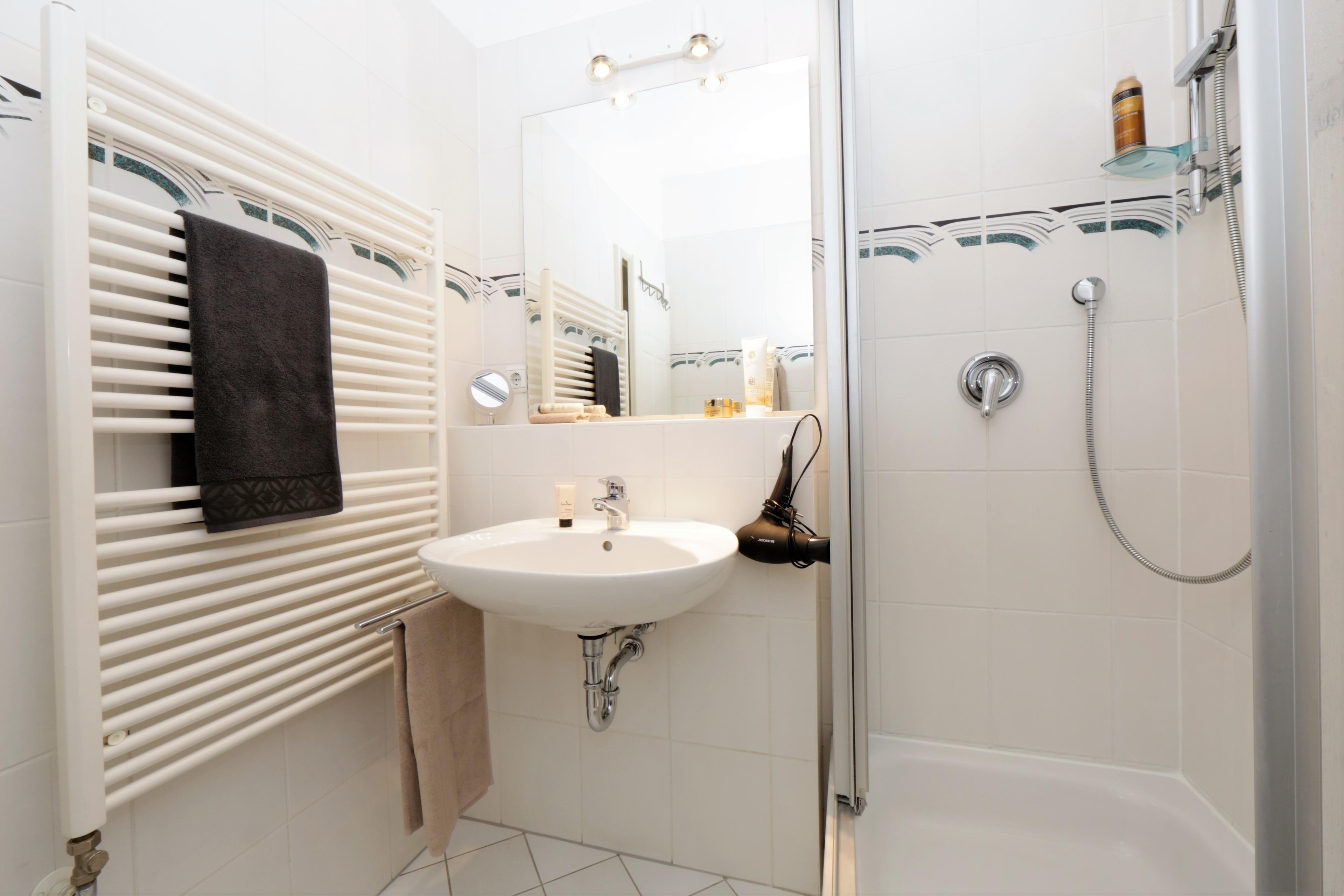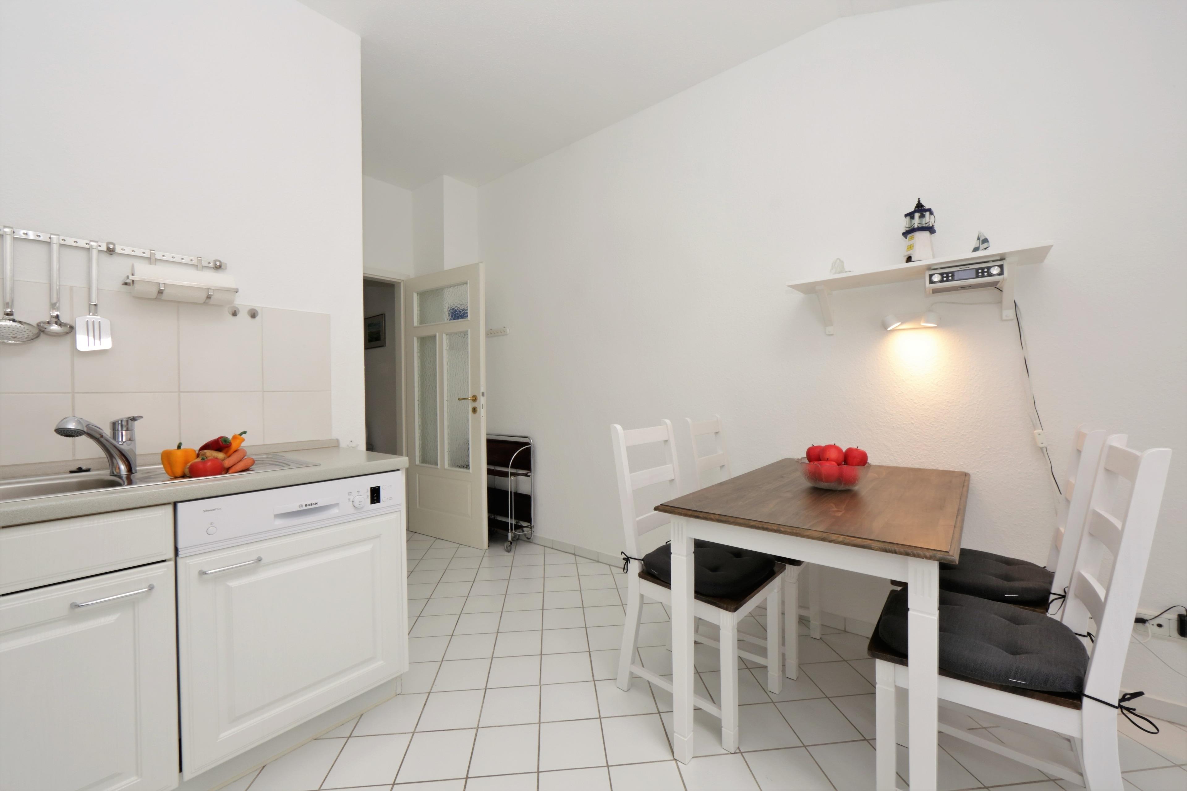 Dieses mit 67 qm großzügige 2-Zimmer-Appartement befindet sich im 2. Obergeschoss und eignet sich für 3 Personen. Der gemütlich eingerichtete Wohnraum mit Echtholzboden bietet den Gästen eine gemütliche Sitzgruppe mit Schlaffunktion für eine weitere Person und einen Flat-TV. Der überdachte geschützte Balkon, der in Richtung Süden zur Delbrückstraße zeigt, lockt die Gäste fast zu jeder Jahres- und Tageszeit ins Freie. Die separate Küche mit Einbauküche inkl. Cerankochfeld, Geschirrspüler, Kühlschrank, Backofen, Mikrowelle etc. und ein Essplatz laden zu gemeinsamen Mahlzeiten ein. Das Schlafzimmer, ebenfalls mit Parkettboden und Echtholzmöbeln, ist mit einem Doppelbett mit getrennten Matratzen (90 x 200) sowie genügend Schrankraum eingerichtet. Das Bad ist mit Dusche und Waschbecken/WC ausgestattet. Außerdem steht den Gästen eine Waschmaschine zur Verfügung. Ein Pkw-Stellplatz befindet sich auf dem Grundstück und ist der Wohnung zugeordnet.