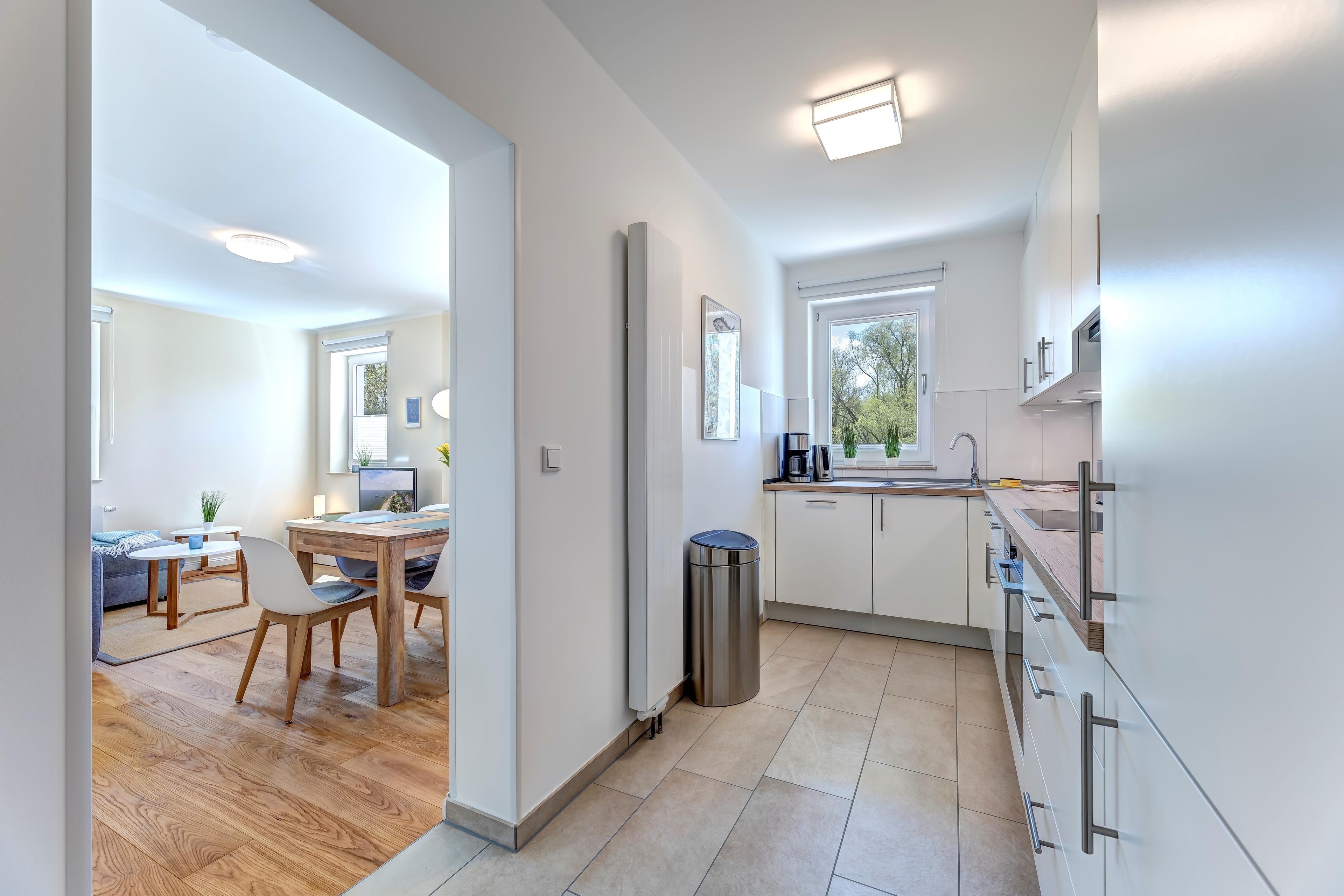 Die separate, moderne Küche lässt das Herz jedes Hobbykochs höherschlagen. Hier finden Sie ein hochwertiges Cerankochfeld und einen Backofen, die Ihnen alle Möglichkeiten bieten, um kulinarische Köstlichkeiten zuzubereiten. Zudem stehen Ihnen eine Geschirrspülmaschine, ein großer Kühlschrank sowie ein separates Tiefkühlfach zur Verfügung, sodass Sie Lebensmittel bestens lagern und jederzeit frische Zutaten verwenden können. Die Küche ist vollständig ausgestattet und bietet alles, was Sie für die Zubereitung Ihrer Lieblingsgerichte benötigen.