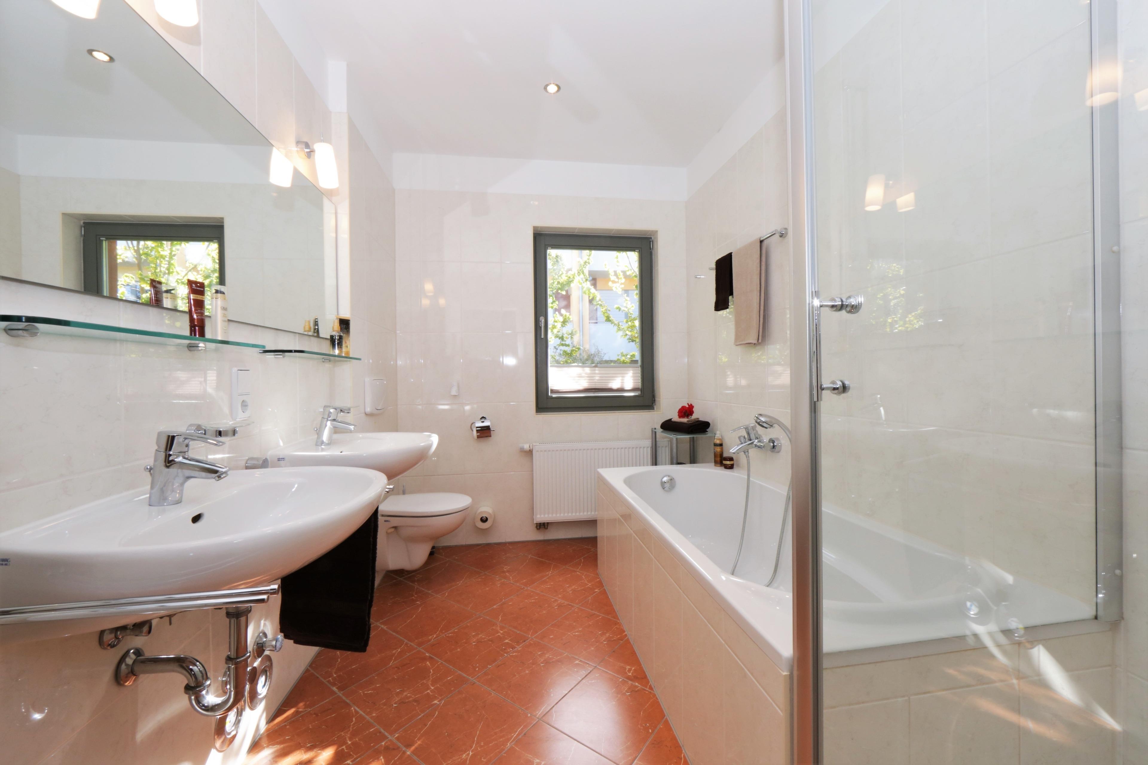 Alle Appartements der Villa Jasmin verfügen über einen Balkon und eine Terrasse oder eine Loggia. Kinder freuen sich über den kleinen Spielplatz auf dem Grundstück. Es sind nur ca. 100m bis zum breiten, feinsandigen Strand von Heringsdorf, wo man einen Strandkorb mieten und herrlich baden kann. In nur wenigen Fußminuten erreichen Sie das lebendige Ortszentrum mit seinen zahlreichen Cafés, Restaurants und Einkaufsmöglichkeiten. Von hier aus gelangen Sie umgehend zur Heringsdorfer Seebrücke. Sie ist mit 508 m die längste Seebrücke Deutschlands. Außerdem befinden sich im Zentrum die beliebte Konzertmuschel und der größte Strandkorb der Welt! Waschmaschine und Trockner gegen Gebühr sind im Keller untergebracht. In der Villa Jasmin können Sie einen Fahrradkeller sowie gegen Gebühr Waschmaschine und Trockner nutzen.