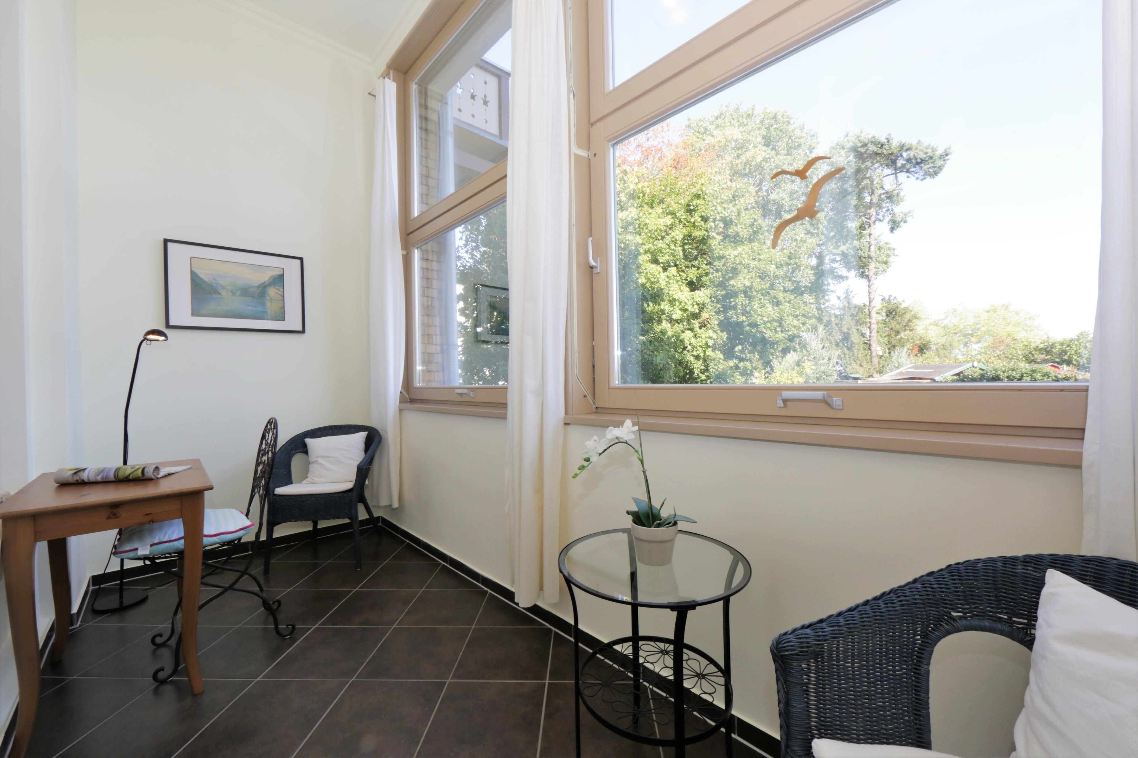 Dieses gepflegte Ferienappartement vereint Charme einer alten Villa und den Komfort einer modernen Wohnung. Das ca. 51 m² große 2-Zimmer Appartement bietet 2-4 Personen ausreichend Platz für einen angenehmen Aufenthalt. Das Besondere an dieser Wohnung sind zwei geschlossene Loggien (Fenster lassen sich öffnen) mit teilweisem Seeblick. Der geräumige Wohnraum bietet den Gästen eine Sitzgarnitur, bestehend aus Sofa und Sessel mit Flat TV. Die vollausgestattete Küche verfügt über Geschirrspüler, Backofen, Spülmaschine, Kühlschrank etc. und ist ebenfalls im Wohnraum offen integriert. Der Essplatz ist in der angrenzenden Loggia untergebracht und bietet Ihnen einen herrlichen Ausblick. Das Schlafzimmer ist mit einem Doppelbett mit getrennten Matratzen (80 x 200), Schrankraum und einem zusätzlichen TV eingerichtet. An das Schlafzimmer schließt sich die zweite Loggia an, die zum Lesen und Verweilen einlädt und in der Sie denselben schönen Blick genießen können. An einem kleinen Schreibtisch können sie z.B. Postkarten an Ihre Lieben zu Hause schreiben. Im modernen Bad finden Sie eine Dusche und Waschtisch/WC. Der Pkw- Stellplatz befindet sich auf dem Grundstück und ist der Wohnung zugeordnet, Fahrräder können im Keller untergestellt werden.