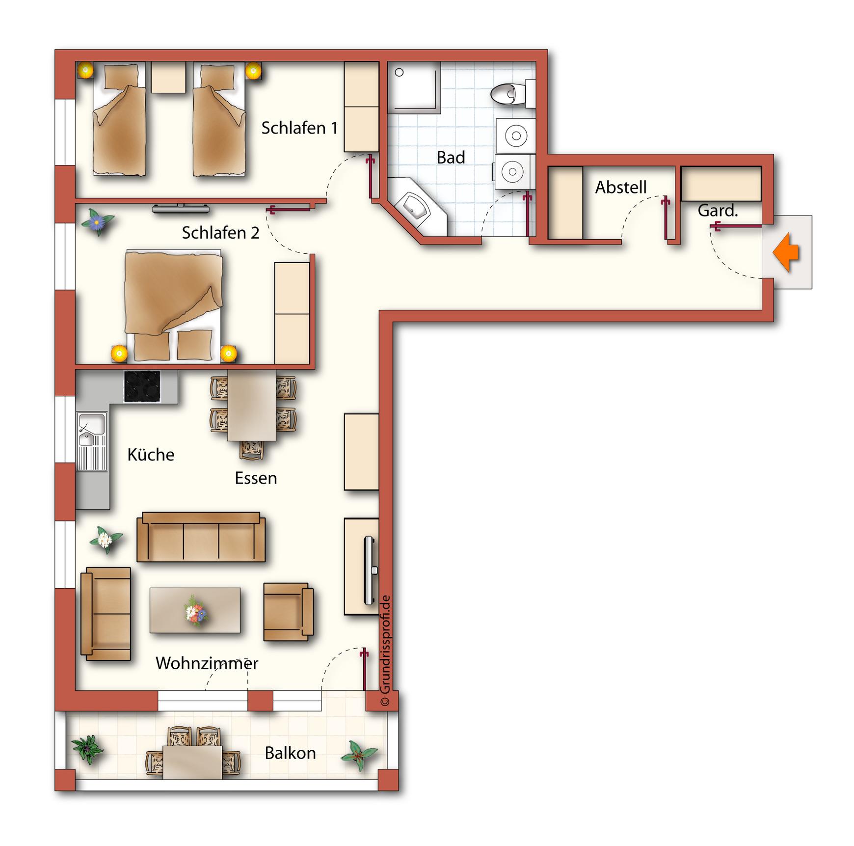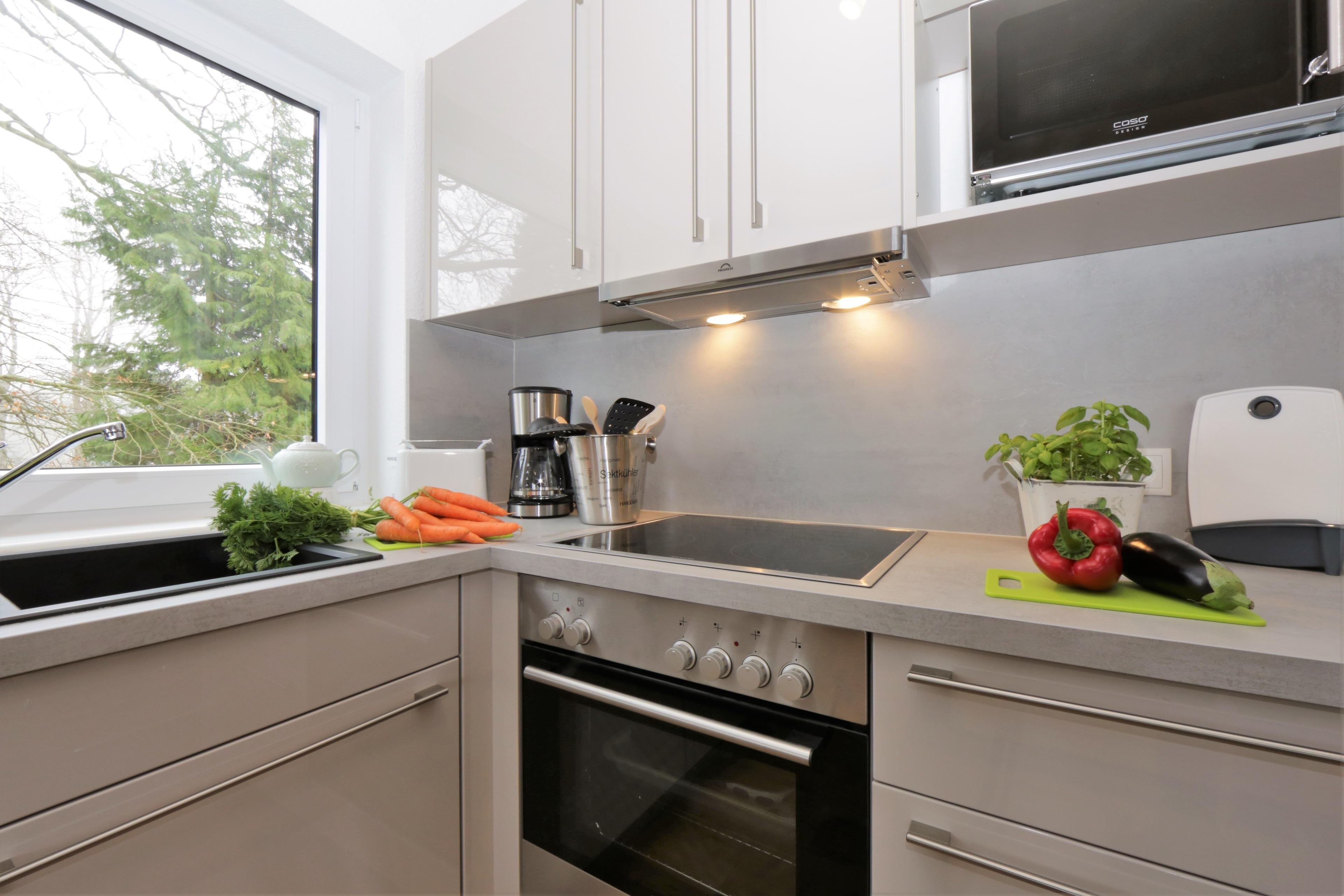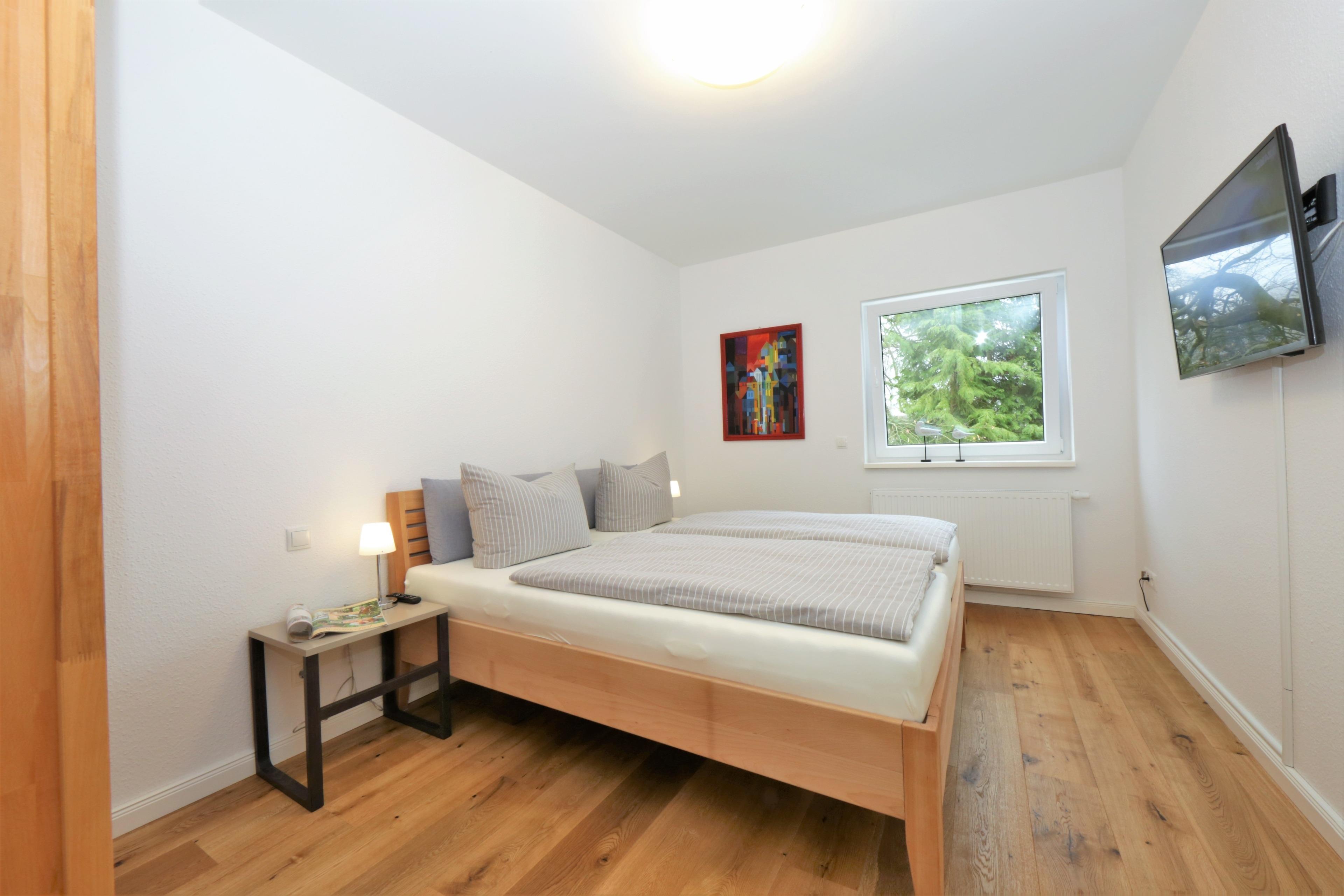 Dieses mit 90 qm großzügige 3-Zimmer Appartement befindet sich im 1. Obergeschoss und eignet sich für 4 Personen. Der helle Wohnraum erwartet seine Gäste mit einer modernen Ledergarnitur zum Relaxen. Flat- TV ist selbstverständlich. Der Essplatz sowie die Küche befinden sich ebenfalls im Wohnraum. Die Küche ist mit Cerankochfeld, Backofen, Mikrowelle, Geschirrspülmaschine und Kühlschrank ausgestattet. Der nordöstlich ausgerichtete Balkon lockt Sie bereits zum Frühstück ins Freie. Die Schlafzimmer sind mit einem Doppelbett, einem Kleiderschrank und einmal mit Schreibtisch eingerichtet. Das moderne Badezimmer ist mit einer Dusche, einem Waschtisch und WC ausgestattet. Hier stehen den Gästen außerdem Waschmaschine und Trockner zur Verfügung. Dem Appartement ist ein Pkw-Stellplatz in der Tiefgarage zugeordnet.