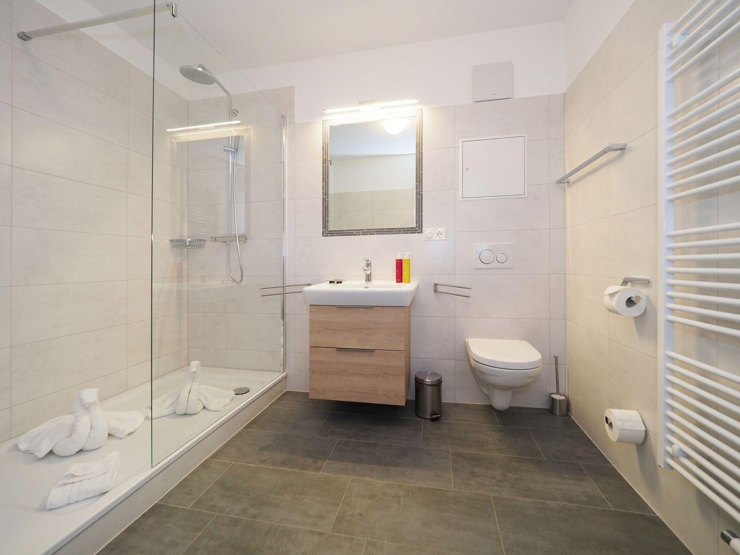 2-Zimmer-Wohnung mit Balkon, Bad mit begehbarer Regendusche, Küche mit Cerankochfeld, Backofen, Geschirrspüler und Mikrowelle, Sonstiges: LED-Fernseher, DVD-Player, Musikanlage, Nichtraucher, Haustiere nicht gestattet