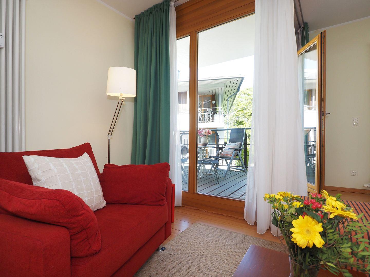 2-Zimmer-Wohnung mit Balkon, Bad mit Wanne und Dusche, Küche mit Cerankochfeld, Backofen, Geschirrspüler und Mikrowelle, Sonstiges: LED-Fernseher 49 Zoll, Blu-Ray-Player, Musikanlage, Fön, Nichtraucher, Haustiere gestattet