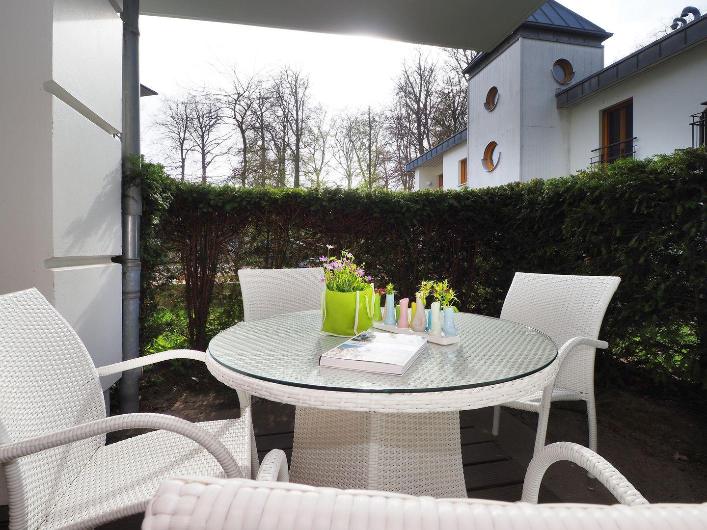 2-Zimmer-Wohnung mit Terrasse, Bad mit Wanne und Dusche, Küche mit Cerankochfeld, Backofen, Geschirrspüler und Mikrowelle, Sonstiges: LED-Fernseher, 55 Zoll, mit integrierter Soundanlage, DVD-Player, Nichtraucher, Haustiere gestattet