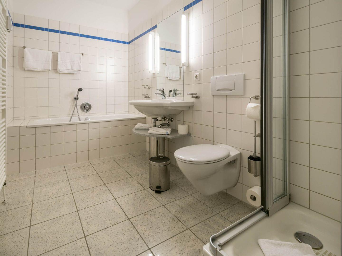 Diese nette Ferienwohnung punktet mit einem privaten Balkon. Die Küche ist voll ausgestattet und bietet neben einem Backofen mit Cerankochfeld, einen Geschirrspüler, eine Mikrowelle, einen Wasserkocher, eine Kaffeemaschine und einen Toaster. Im Wohnzimmer finden sich neben dem ausziehbaren Schlafsofa auch ein Schlafsessel sowie ein LED-TV, ein DVD-Player und eine Musikanlage. Das Schlafzimmer liegt separat und ist mit einem Doppelbett eingerichtet. Das Badezimmer überzeugt mit einer Badewanne, einer Dusche, einem Waschbecken, einem WC sowie einem großen Spiegel.