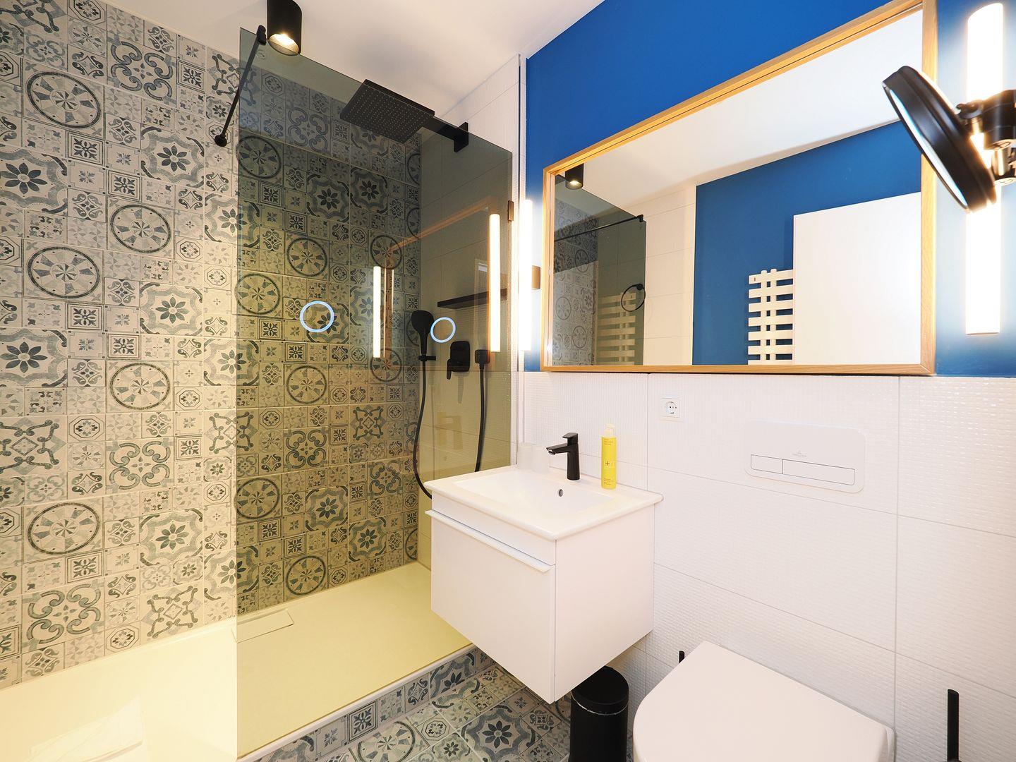 Entspannen Sie auf Ihrem privaten Balkon auf der Seebrücke Heringsdorf! Die 2023 renovierte, lichtdurchflutete Ferienwohnung ist auf zwei Ebenen, mit einer Empore auf der oberen Etage konzipiert und vom darunter liegenden Wohnbereich aus über eine Treppe zu betreten. Sowohl das separate Schlafbereich auf der Empore mit dem Boxspringdoppelbett, als auch das gemütliche Eckschlafsofa im Wohnzimmer mit Smart-TV bietet Ihnen angenehme Nächte. Neben dem komfortablen Esstisch im Wohnbereich finden Sie auch genügend Platz für Ihre Garderobe und haben einen direkten Ausgang zum Balkon mit Sitzgarnitur, wo Sie den herrlichen Weitblick auf die Ostsee genießen können. Die offene Küchenzeile im Wohnraum ist mit Ceranfeld, Backofen, Geschirrspüler, Kühl-Gefrierkombination, Spülmaschine, Toaster, Mikrowelle, Wasserkocher und alle erforderliche Küchenutensilien ausgestattet. Das Badezimmer überzeugt mit einer ebenerdigen Dusche, einem Waschbecken, einem WC sowie einem großen Spiegel und Kosmetikspiegel. Für Ihren Komfort sind Bettwäsche, Handtücher, Reinigungs- und Waschmittel als Erstausstattung inklusive. Der WLAN-Zugang ist kostenfrei nutzbar. Auf Wunsch stellen wir ein Kinderreisebett und einen Kinderhochstuhl gegen einen Aufpreis zur Verfügung. Vor dem Haus gibt es nur Be-und Endladeparkplätze, als Alternative bieten wir für das örtliche Parkhaus in Heringsdorf ermäßigte Parkkarten gemäß aktueller Preise. Die Parkkarte erhalten Sie bei Anreise in unserem Servicebüro. Haustiere sind in dieser Ferienwohnung herzlich willkommen, hierfür berechnen wir Gebühr gemäß aktueller Preise. Im Untergeschoss der Seebrücke steht Ihnen ein abschließbarer Fahrradraum sowie ein kleiner Waschraum mit Waschmaschine, Trockner, Bügelbrett und Bügeleisen kostenfrei zur Verfügung.