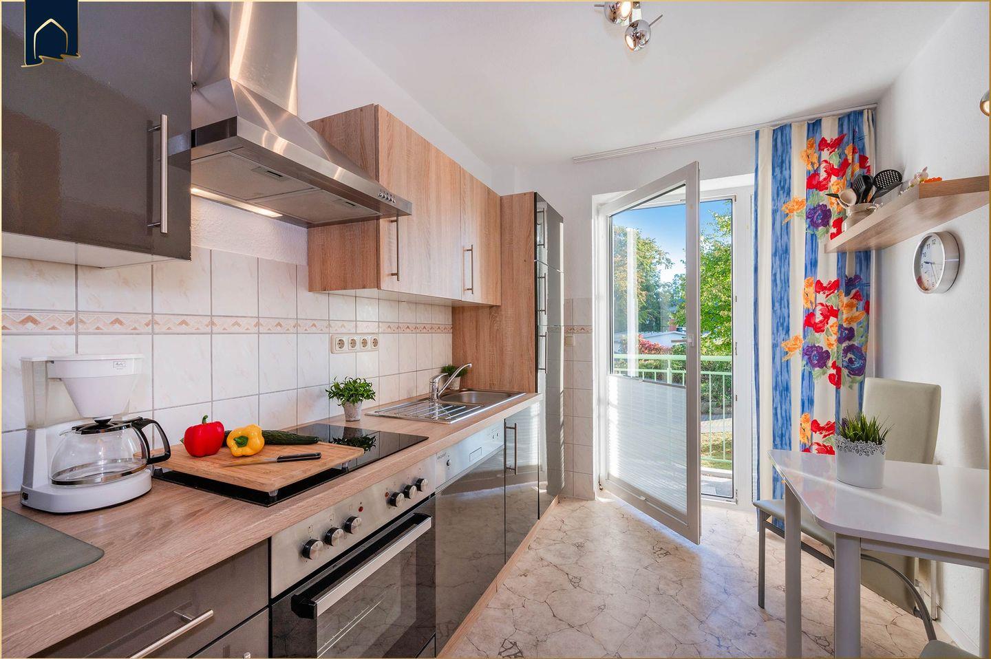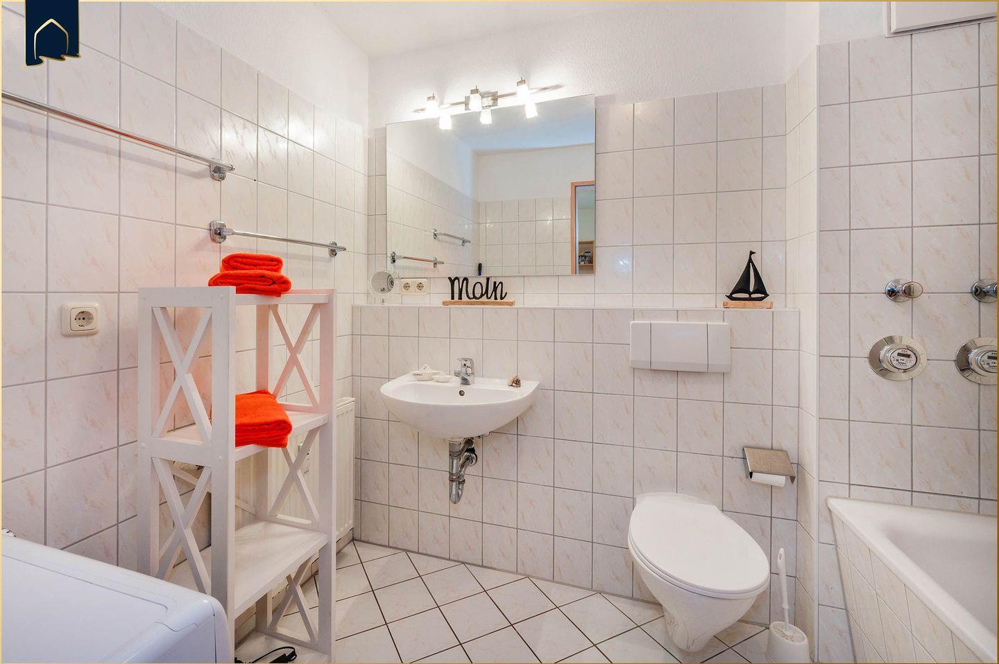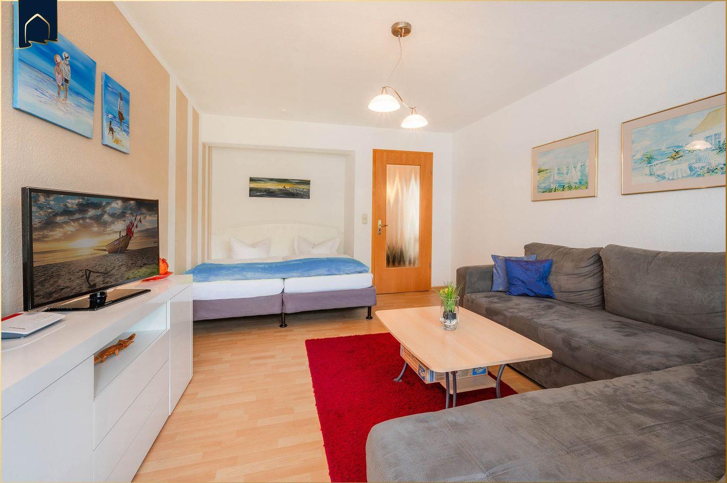 Das Herzstück der Wohnung ist der gemütliche Wohnbereich mit Schlafsofa, TV, Gesellschaftsspielen und Essplatz. Die offene Küche ist komplett ausgestattet mit Backofen, Kühlschrank, Gefrierfach, Toaster und allem, was Hobbyköche benötigen. Besonders komfortabel: Die Wohnung verfügt über eine Badewanne – ideal zum Entspannen nach einem Tag am Strand oder einer Fahrradtour. WLAN ist selbstverständlich inklusive und macht auch das Streaming oder Arbeiten zwischendurch möglich.
