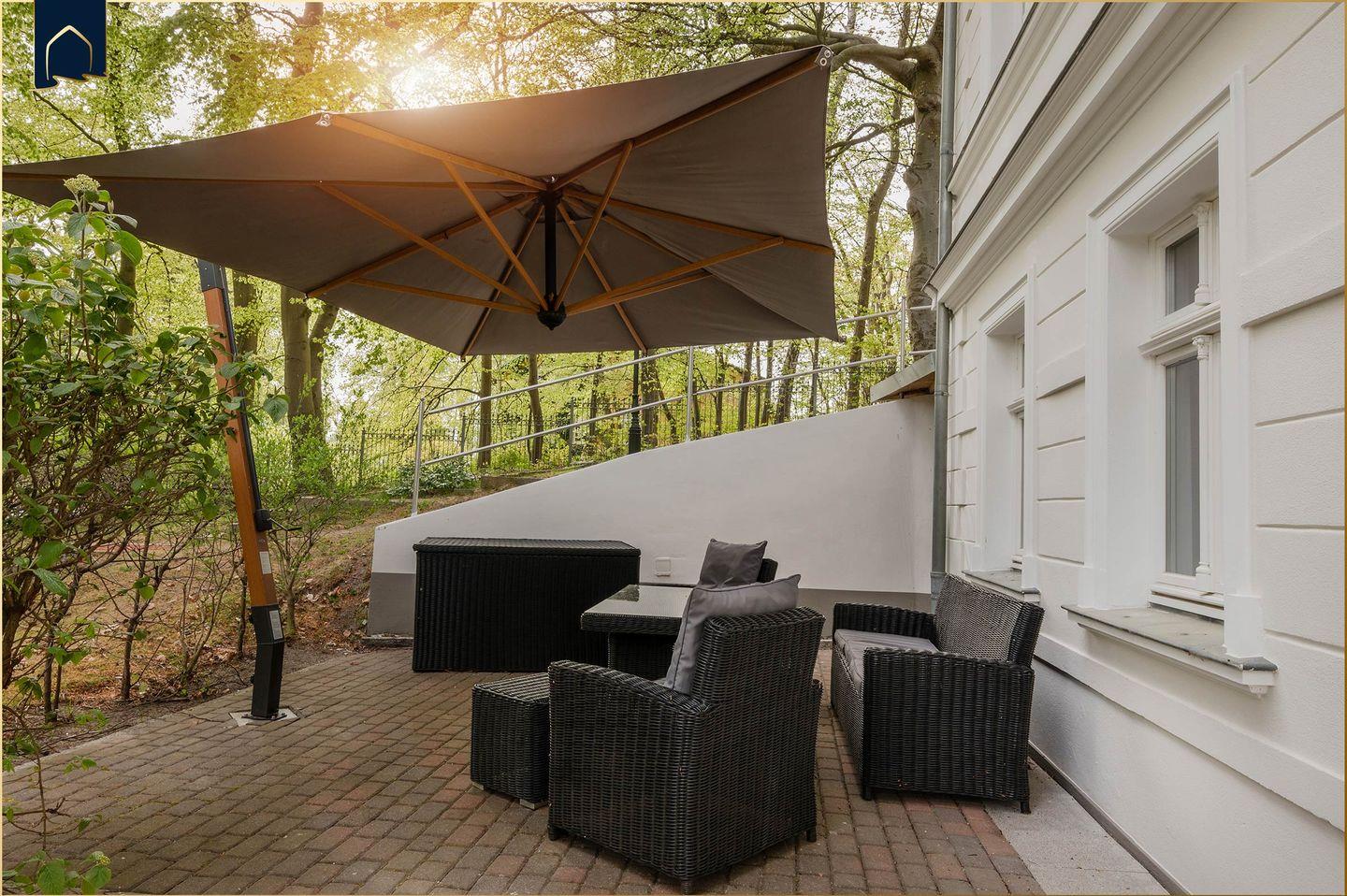 Die Villa Hohe Buchen App. 2 in Seebad Heringsdorf bietet auf 85 m² eine moderne, behindertengerechte Unterkunft mit zwei Schlafzimmern, Terrasse und Garten. Zur Ausstattung gehören eine geschlossene Küche mit Spülmaschine, Ceranherd, Mikrowelle und vieles mehr. WLAN, Privatparkplatz sowie Waschmaschine und Trockner sind vorhanden. Haustiere sind erlaubt, Kinder willkommen.