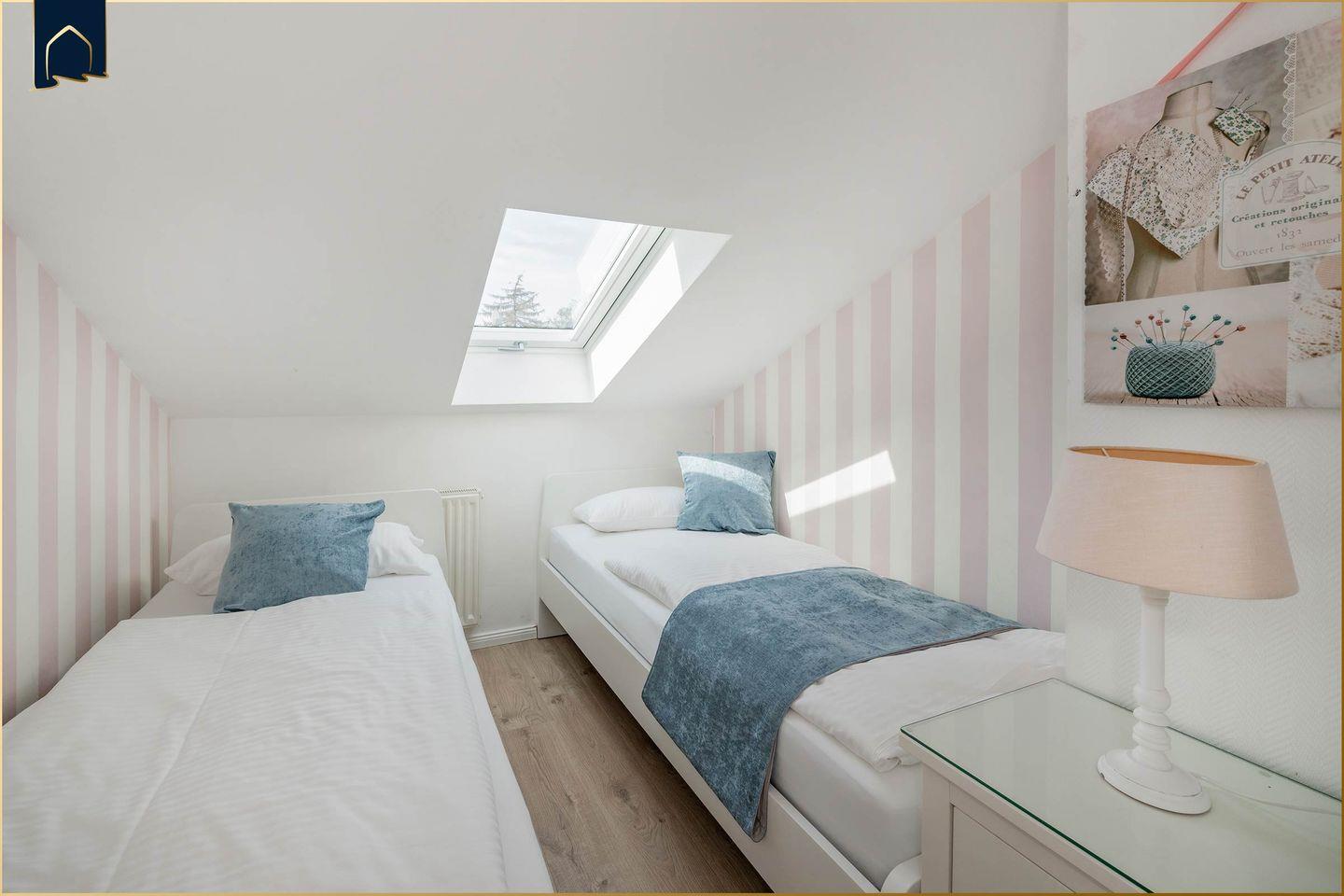 Die Wohnung erstreckt sich über zwei Etagen und bietet mit zwei separaten Schlafzimmern Schlafmöglichkeiten für bis zu vier Personen. Das moderne Bad ist mit Dusche, Waschbecken und WC ausgestattet. Im Wohnbereich lädt ein gemütliches Sofa zum Entspannen ein, während ein Flachbild-TV mit DVD-Player und ein CD-Radio für Unterhaltung sorgen. Für den nötigen Komfort stehen Ihnen zudem eine Waschmaschine, ein Trockner (jeweils zur Mitnutzung) und ein kostenloser WLAN-Zugang zur Verfügung.