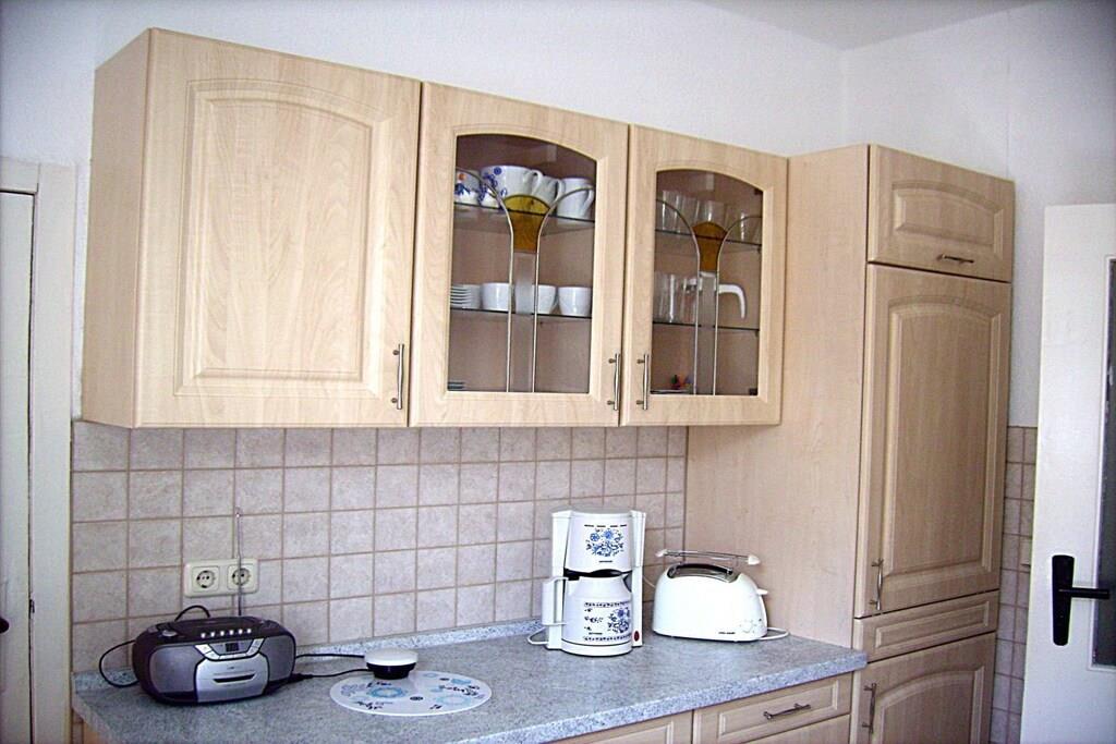 Die Ferienwohnung befindet sich unten, direkter Zugang zur Terrasse. Belegung 1- 5 Personen Im Schlafzimmer , 2 Betten und 1 Liege sowie 1 Schrank, 2 Nachttische mit Nachttischlampen. Im 2. Schlafraum 2 Liegen, 1 Schrank, Nachttische und Nachttischlampen. Reisebett und Hochstuhl können gestellt werden. Wohnzimmer mit Couchgarnitur und Fernseher, Anrichte. Küche mit E-Herd, Geschirrspüler, Kühl-und Gefrierschrank, Sitzgelegenheit Ein Bad mit Dusche und WC neu, sowie eine Waschmaschine. Ein Bügelbrett und Bügeleisen sind auch vorhanden. Terrasse mit Gartenmöbeln laden zum grillen ein. Ruhige große Hoflage für Kinder zum spielen geeignet.