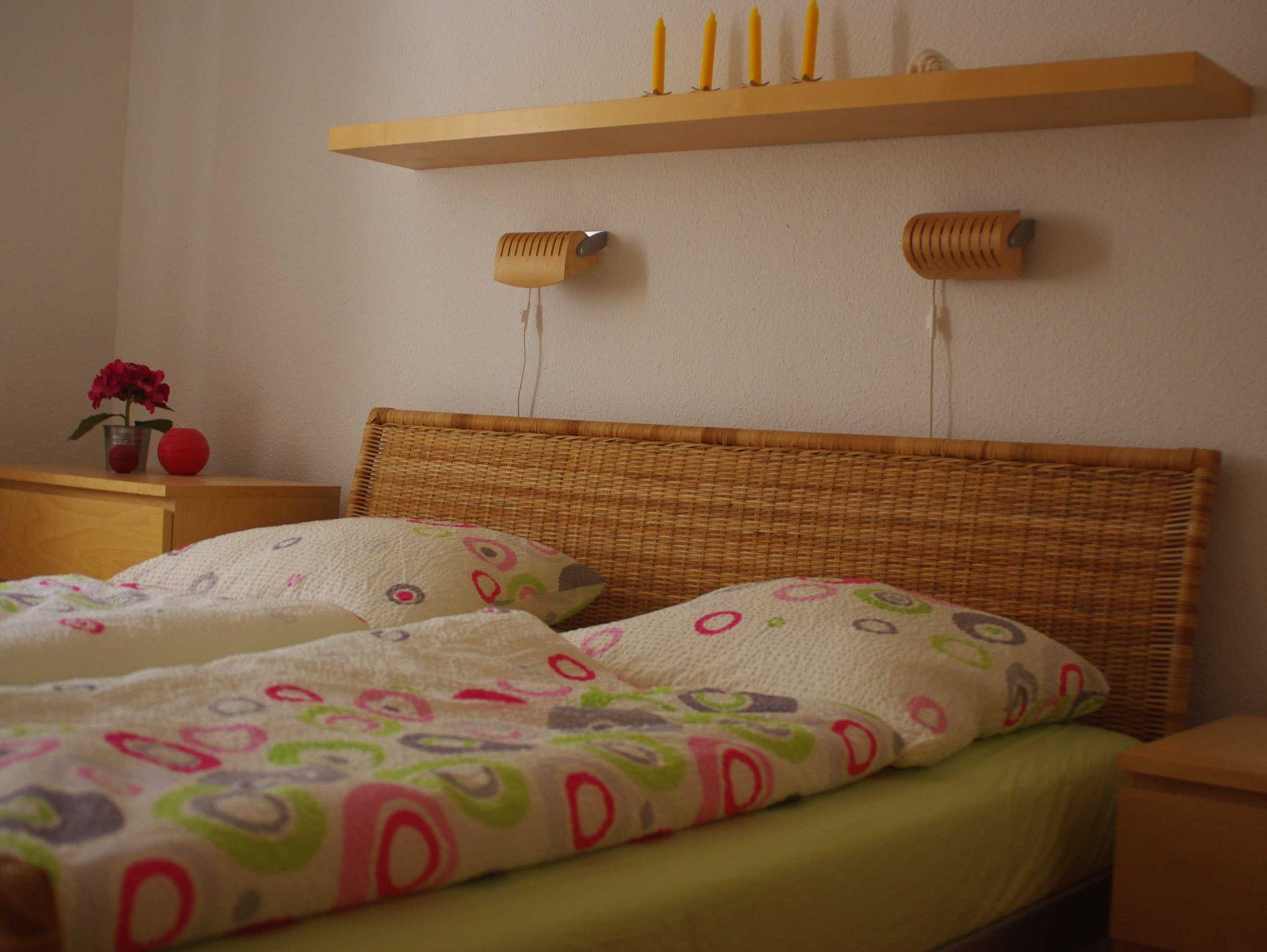 Das Doppelbett im Schlafzimmer ist mit hochwertigen Matratzen ausgestattet, ein Kinderbett stellen wir Ihnen auf Wunsch dazu. Schränke und ausreichend Ablageflächen befinden sich im Flurbereich. Bei Bedarf ist auch ein Zustellbett (80x200 cm) nutzbar - wahlweise im Schlaf-oder Wohnzimmer.