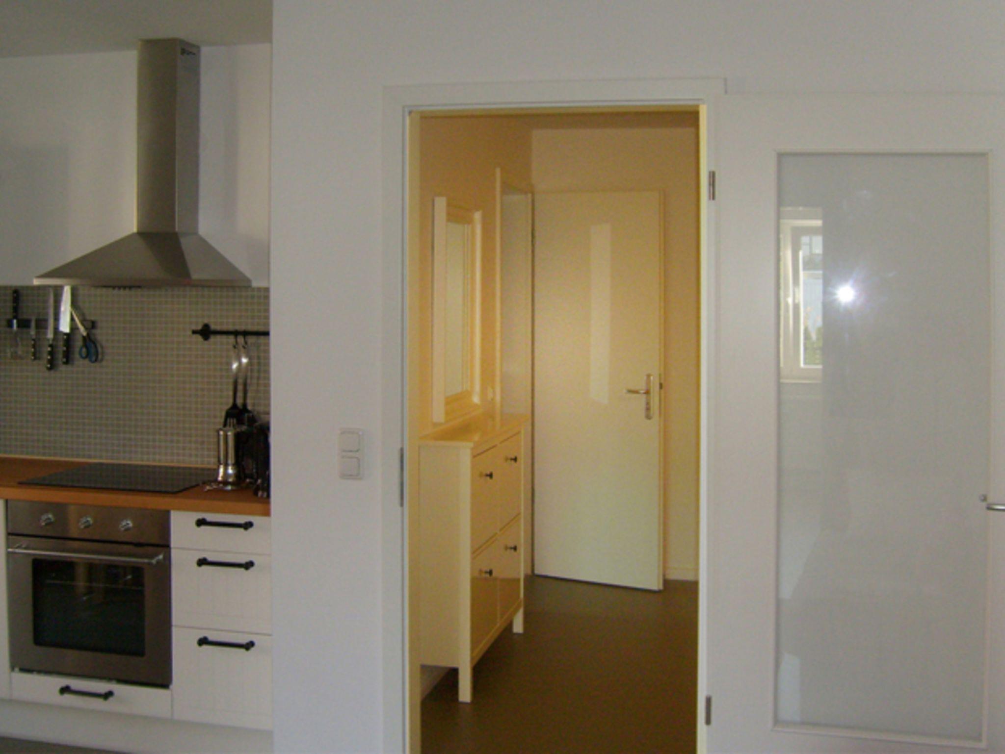 Die Küche ist komplett ausgestattet und verfügt u.a. über einen Herd mit Ceranfeld-Kochplatten, einen Backofen, Dunstabzug und einen Geschirrspüler.