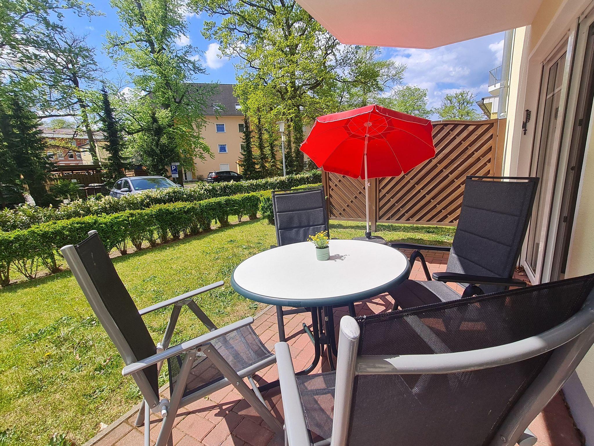 Nur 350m vom Strand entfernt liegt diese gemütlich und modern eingerichtete 2-Raum-Wohnung im Erdgeschoss mit ca. 48 m² Wohnfläche und einer sonnigen Südterrasse. Die sehr helle und freundliche Wohnung kann mit bis zu 4 Personen genutzt werden. Ein separates Schlafzimmer und eine 1,50x2,00 m große Schlafcouch, bieten Platz für 4 Personen. Praktisch erreichbar befindet sich vor dem Objekt ein abschließbarer Abstellraum der bis zu 4 Fahrrädern Platz o.ä. bietet. Der Wohnung ist der kostenlose Stellplatz 2 zugeordnet. WLAN steht kostenlos zu Verfügung.