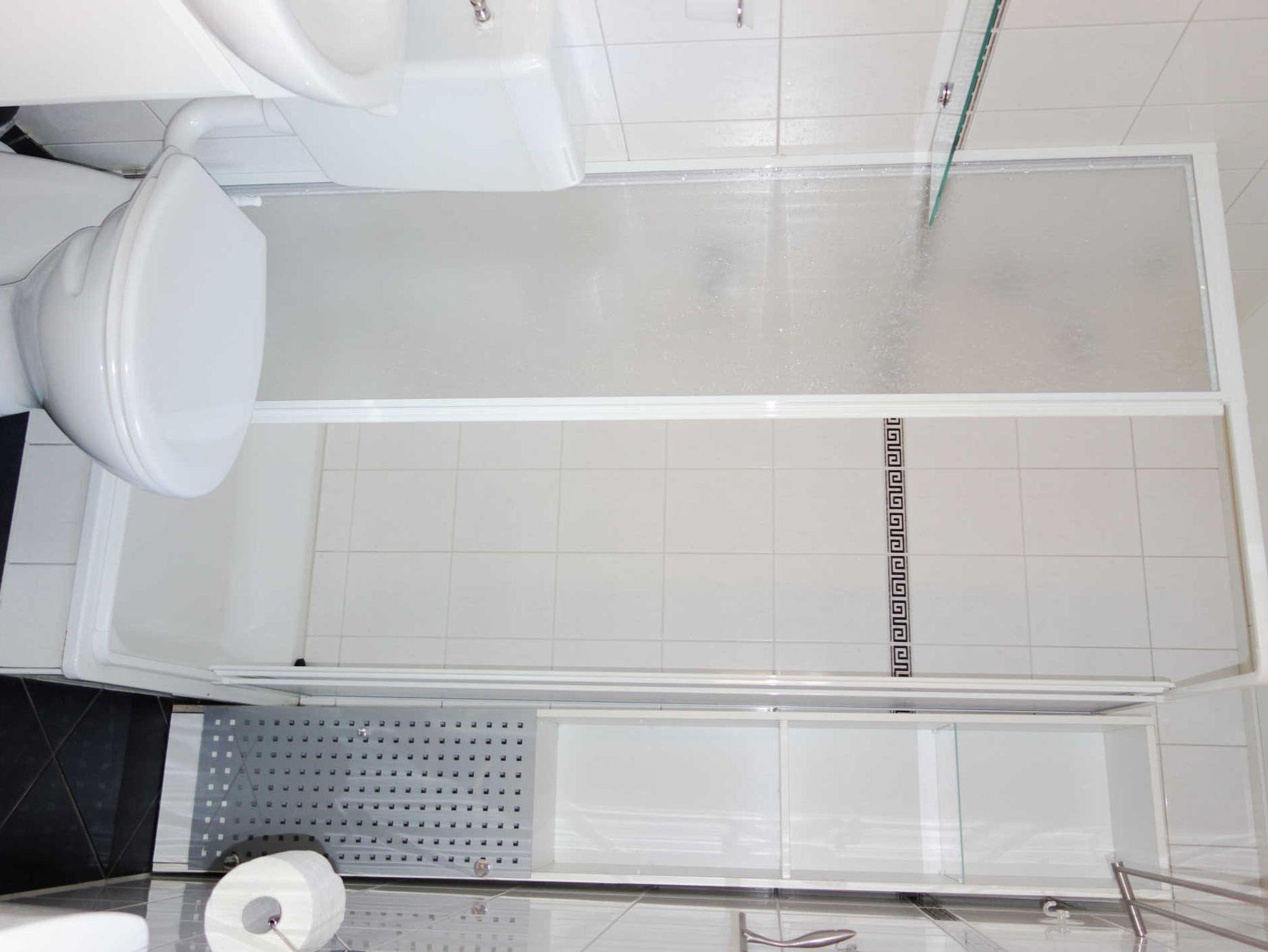 Das Bad ist mit einer Dusche und einem WC ausgestattet.