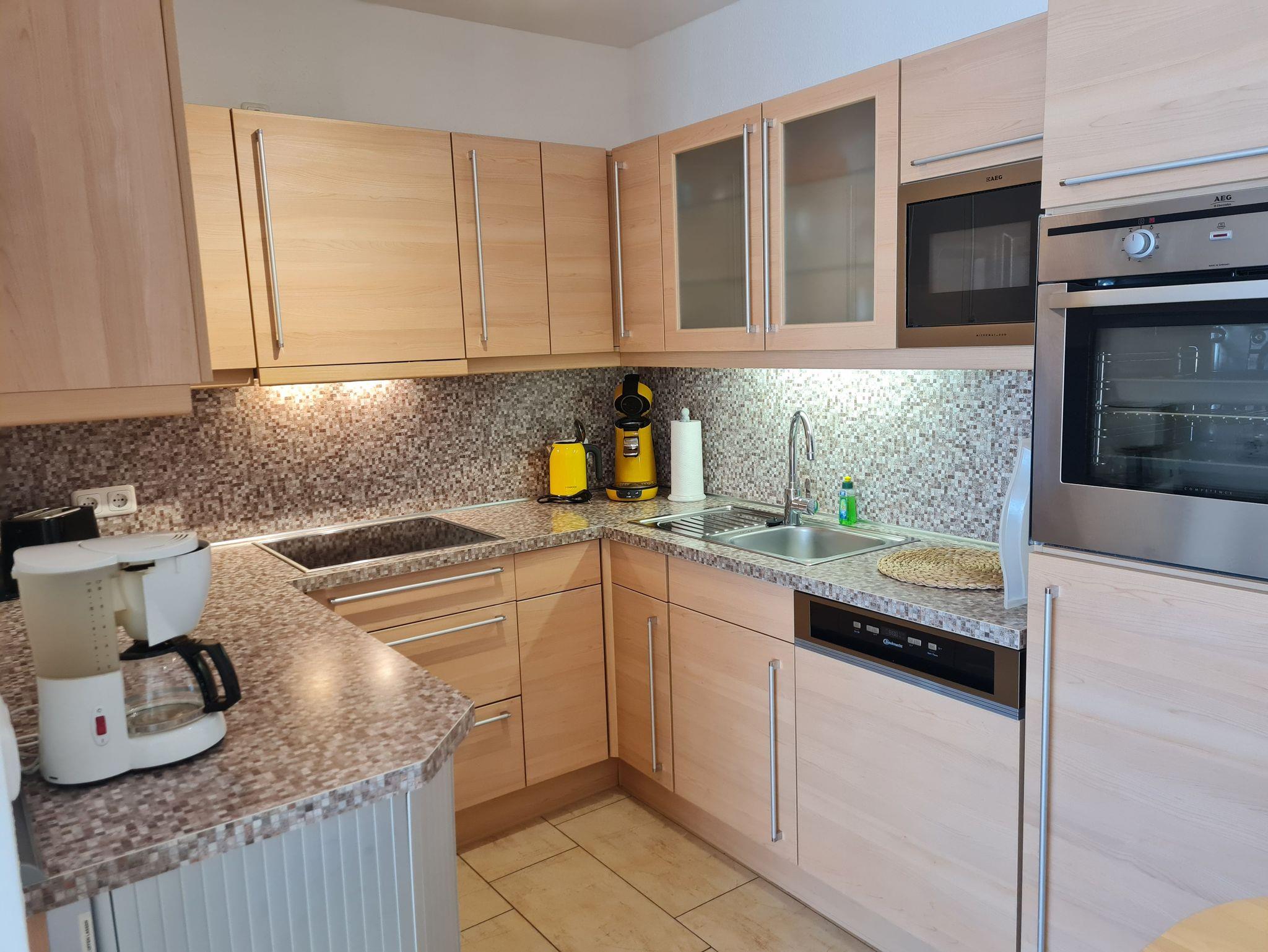 • Offene Küche: Küchenzeile mit hochwertigen Markengeräten inkl. Herd (Ceranfeld 4 Platten), Backofen, Spülmaschine, Kühlschrank mit Gefrierfach, Kaffeemaschine (inkl. Senseo), Toaster, Wasserkocher, Mikrowelle, Tresen mit Barhockern