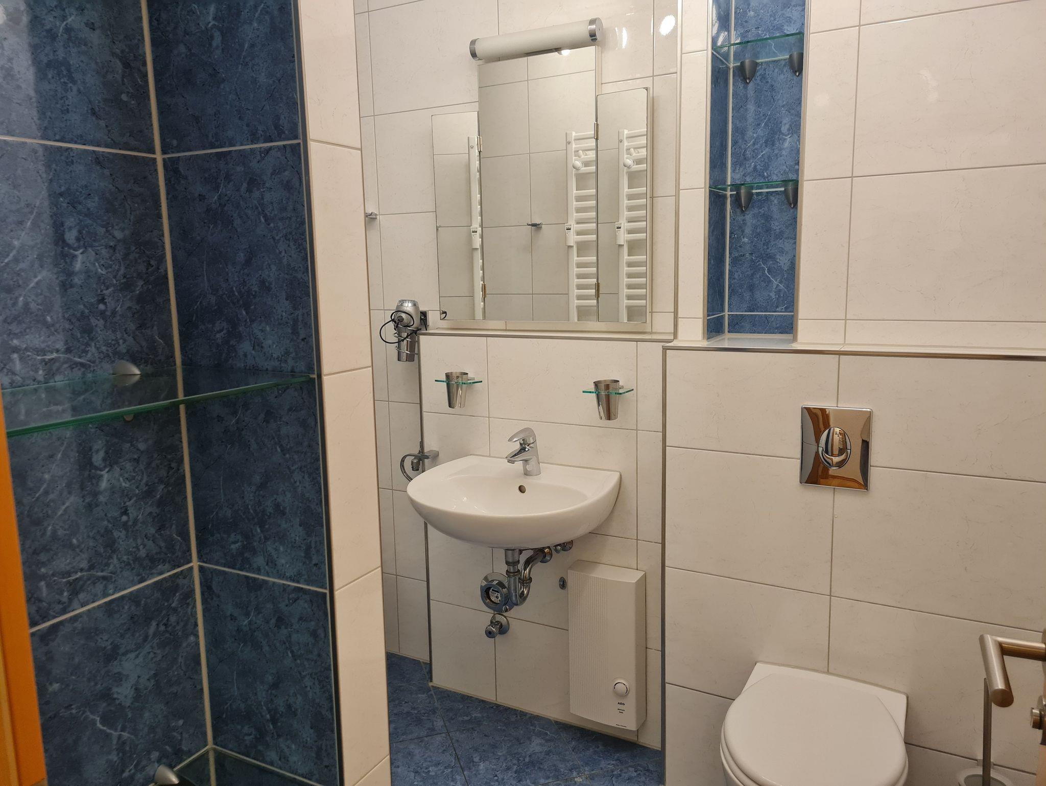 • Großes Badezimmer: im Obergeschoss ein Bad mit Dusche (niedriger Einstieg), WC, Waschbecken, Handtuchheizkörper