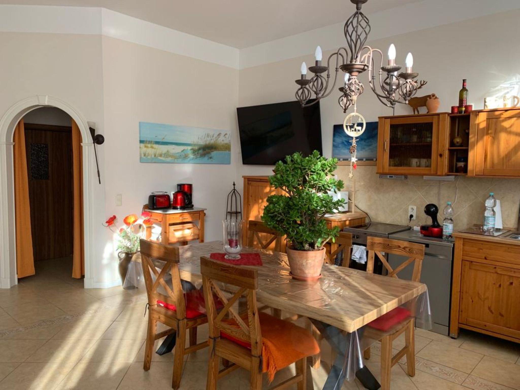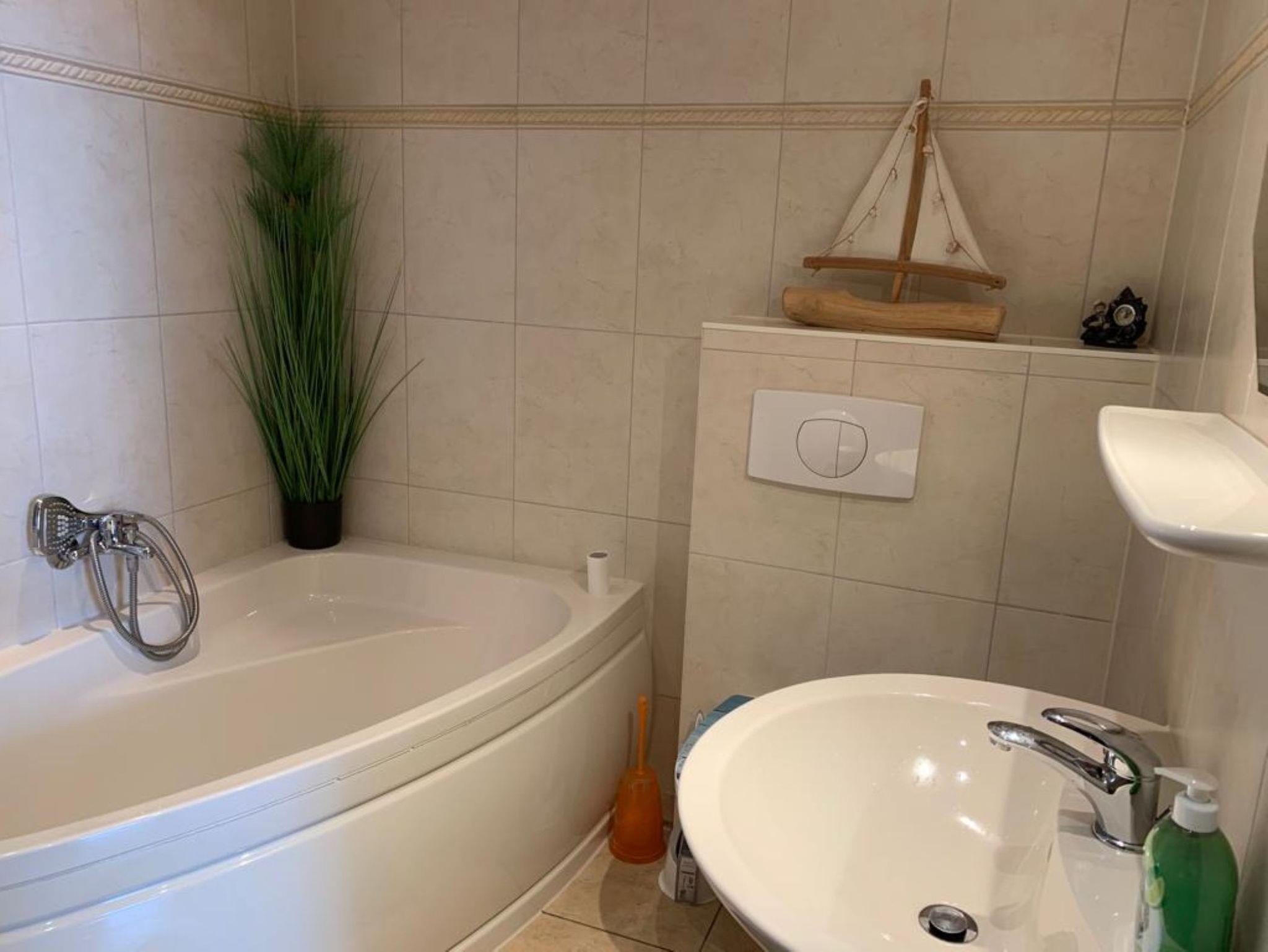 2 Zimmer Ferienwohnung mit separatem Eingang im Haus Malta in der Strandstraße im Erdgeschoss mit Wohnzimmer, offener Küche, Bad mit Badewanne und Schlafzimmer. Zu der Ferienwohnung gehören eine kleine Terrasse und ein PKW-Stellplatz.