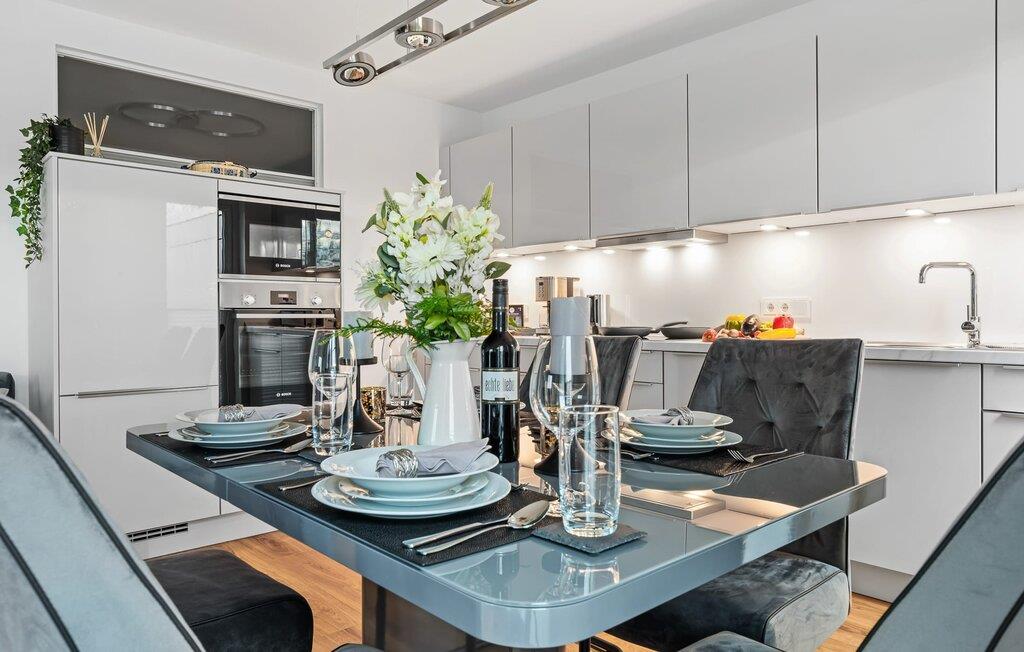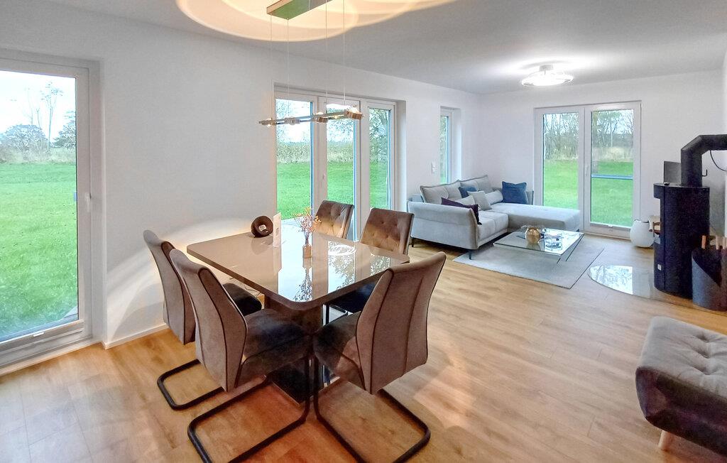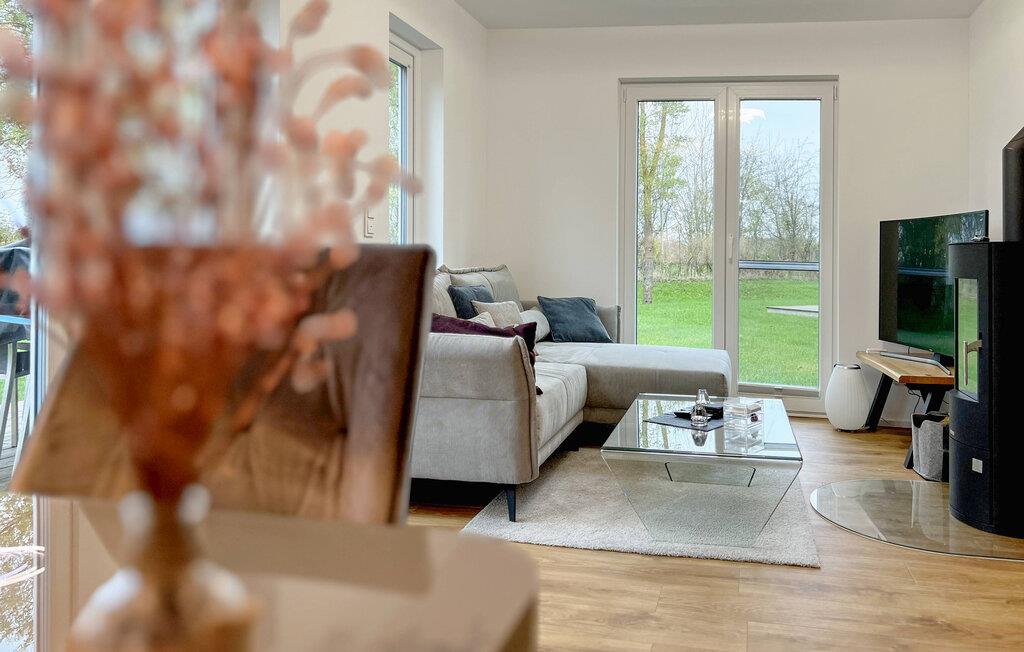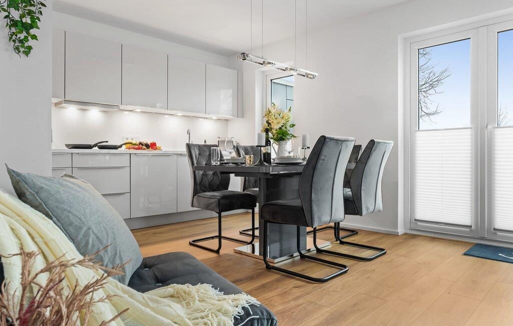 SEEmomente er en rummelig og moderne ferielejlighed i stueetagen med direkte udsigt til de naturbevarende strandenge og marker. Sandstranden Weidefelder med strandstole, restaurant og kiosk ligger i gåafstand og er et attraktivt udflugtsmål på alle tider af året, og der føler de firbenede venner sig også godt hjemme. Minigolfbanen med maritimt tema ligger også i umiddelbar nærhed og glæder både store og små. Med sin gulv-til-loft vinduesfront og den store tilstødende terrasse er den lyse åbne stue/alrum lejlighedens hjerte. Kom ind og føl jer straks hjemme! En behagelig L-formet sofa i stuen, et fjernsyn og en pejs spreder hyggelig varme og hygge selv på knap så hyggelige dage. Når man ser på naturen finder man ro.... Hverdagen bliver mere og mere fjern. Og når solen lokker, er det bare at træde ud på den store terrasse og nyde den friske Østersøluft i fulde drag. Den sydvendte terrasse, der støder op til opholds- og spiseområdet, tilbyder afslappende timer væk fra stress og jag i resten af feriestedet ved Østersøen. Med den bagudvendte udsigt over de naturbevarende strandenge og marker inviterer de medfølgende havemøbler jer til at tilbringe en afslappende ferie. Nyd gode grillaftener eller tag jer tid til kreativ madlavning på ferien det fuldt udstyrede køkken-alrum lader intet tilbage at ønske. To soveværelser med komfortable boxmadrasser er tilgængelige til afslapning om natten. Det første soveværelse er udstyret med en dobbeltseng (180 x 200 cm), mens det andet soveværelse med to store enkeltsenge (120 x 200 cm) inviterer jer til at sove godt. Derudover har begge soveværelser mørklæggende plisségardiner, som bidrager til uforstyrret søvn. Med blot et par enkle trin kan lænestolssengen i stuen forvandles til en ekstra soveplads. En rejseseng og en høj stol er også tilgængelige for yngre gæster. Bruserummet med brusebad i gulvniveau og infrarød kabine sikrer uforglemmelige wellness-øjeblikke, som I kan nyde i lang tid. For at give en hel feriekomfort finder I jeres egen parkeringsplads foran ferielejligheden. Bemærk venligst: OstseeResort Olpenitz er meget populært, og der bygges fortsat i parken. Ikke desto mindre kan I se frem til en 5-stjernet standard og et førsteklasses ophold. Byggeaktiviteterne kommer ikke til at forstyrre jer på ferien, og derfor gives der ikke yderligere afslag i prisen.