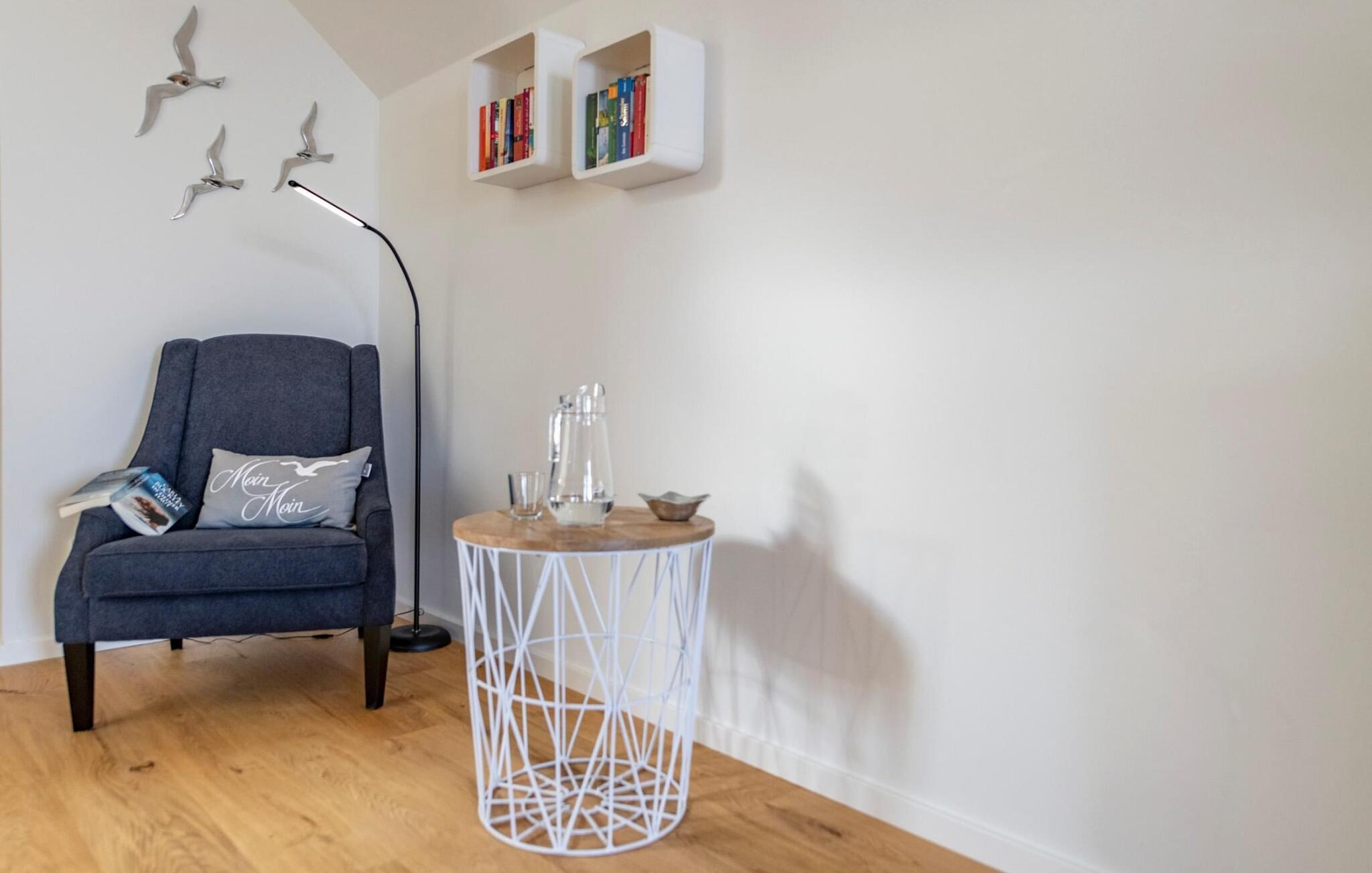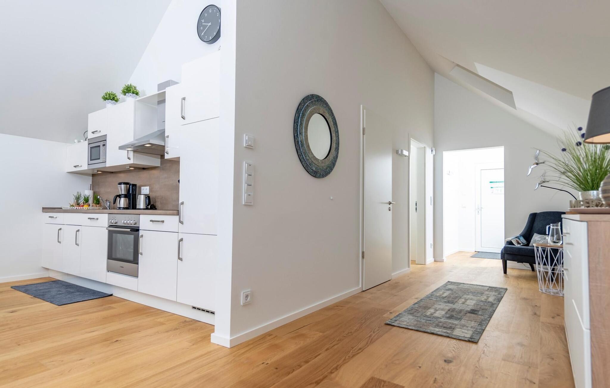 Placeret over tingene kan sejlskibe, der passerer ved indsejlingen til Østersøen, observeres fra hele opholds-/spiseområdet og balkonen. Udsigten falder på Schimmelünde fyrtårn og idyllen i landskabsbeskyttelsesområdet omkring det. Havnepromenaden ligger lige under ferielejligheden og er ideel til slentreture. Yderligere underholdning tilbydes af Telekom Home Entertainment-programmet på fladskærms-tv'et i stuen. Parketgulve og gulvvarme sikrer en behagelig opholdsoplevelse i hver sæson.