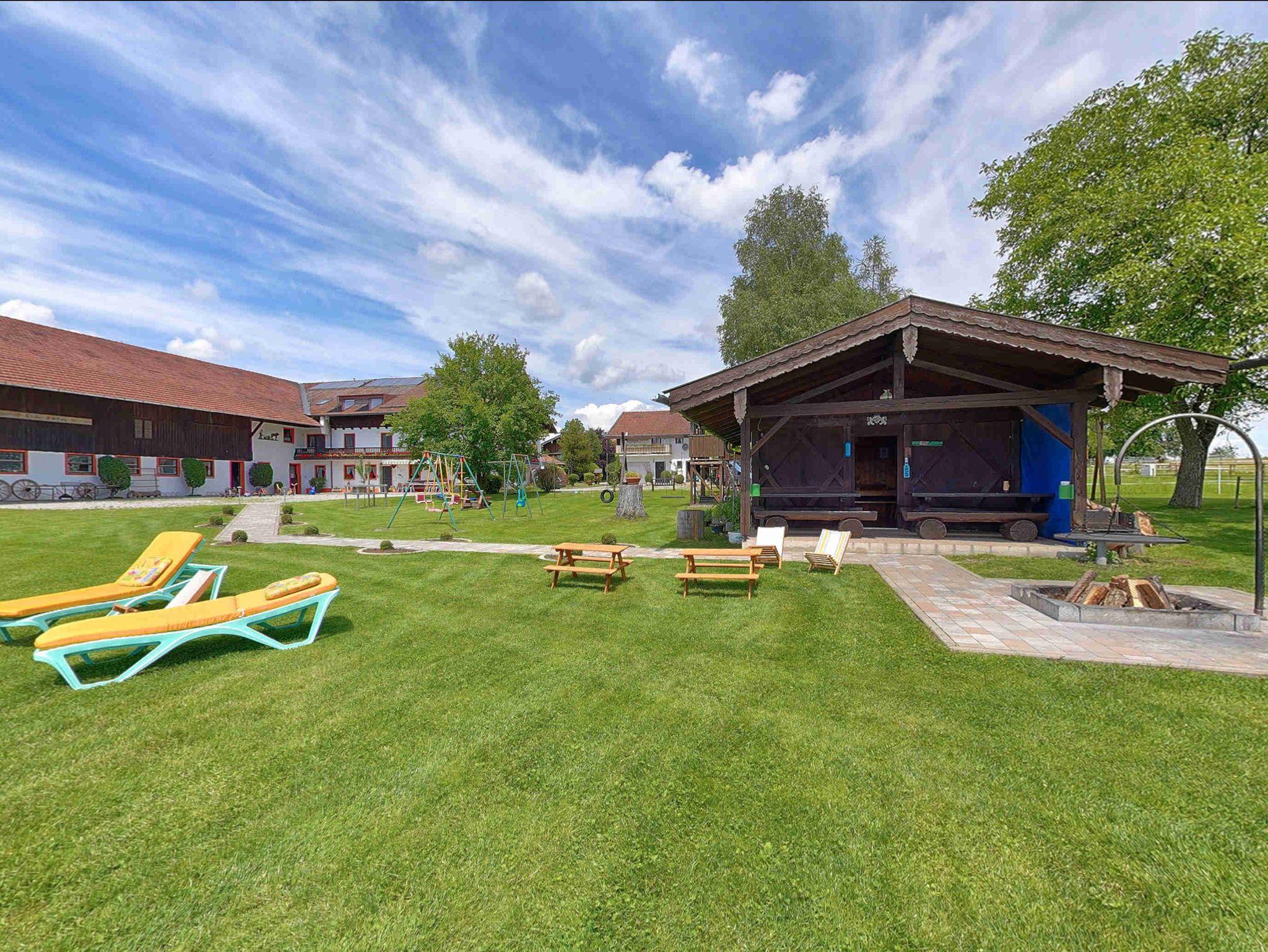 Wollen Sie einen schönen Urlaub auf einem Bauernhof mit grandioser Aussicht über das Bayerische Meer und auf die Chiemgauer Alpen? Dann melden Sie sich. Wir haben fünf Ferienwohnungen im Haus sowie eine Ferienwohnung im Zuhaus (Wohnung 5). Für Kinder haben wir ein Trampolin, Sandkasten, Spielhaus, Kletterturm mit Rutsche, Tischtennisplatte, Fußballtor, große Spielwiese und eine tolle Kinderseilbahn. Auch mehrere Tiere haben wir am Hof wie, Schafe, Katzen, Meerschweinchen, Hund, Hühner, Hasen, Kühe sowie Pferde. Wir sind jedoch kein Reiterhof!! Haustiere sind auf Anfrage und gegen Gebühr erlaubt. Ein Parkplatz ist ebenfalls vorhanden. Für schöne Abende, haben wir eine kleine Grillhütte und eine Feuerstelle die jederzeit benutzt werden darf. Für unsere Radfahrer gibt es auch einen Unterstellplatz/Abstellplatz für die Fahrräder. Ganz neu haben wir auch eine E-Tankstelle für Autos direkt am Hof. Über eine Anfrage/Buchung würden wir uns sehr freuen. Bitte beachten Sie, dass von Herbst bis Frühling nur Vermietung auf Anfrage statt findet.Wir empfehlen den Abschluss einer Reiserücktrittsversicherung, da wir, sollte ein stornierter Termin nicht neu belegt werden können, eine Stornogebühr von 90% der Gesamtkosten erheben. Bei Neubelegung fällt eine Bearbeitungsgebühr von 10% der Gesamtkosten an.
