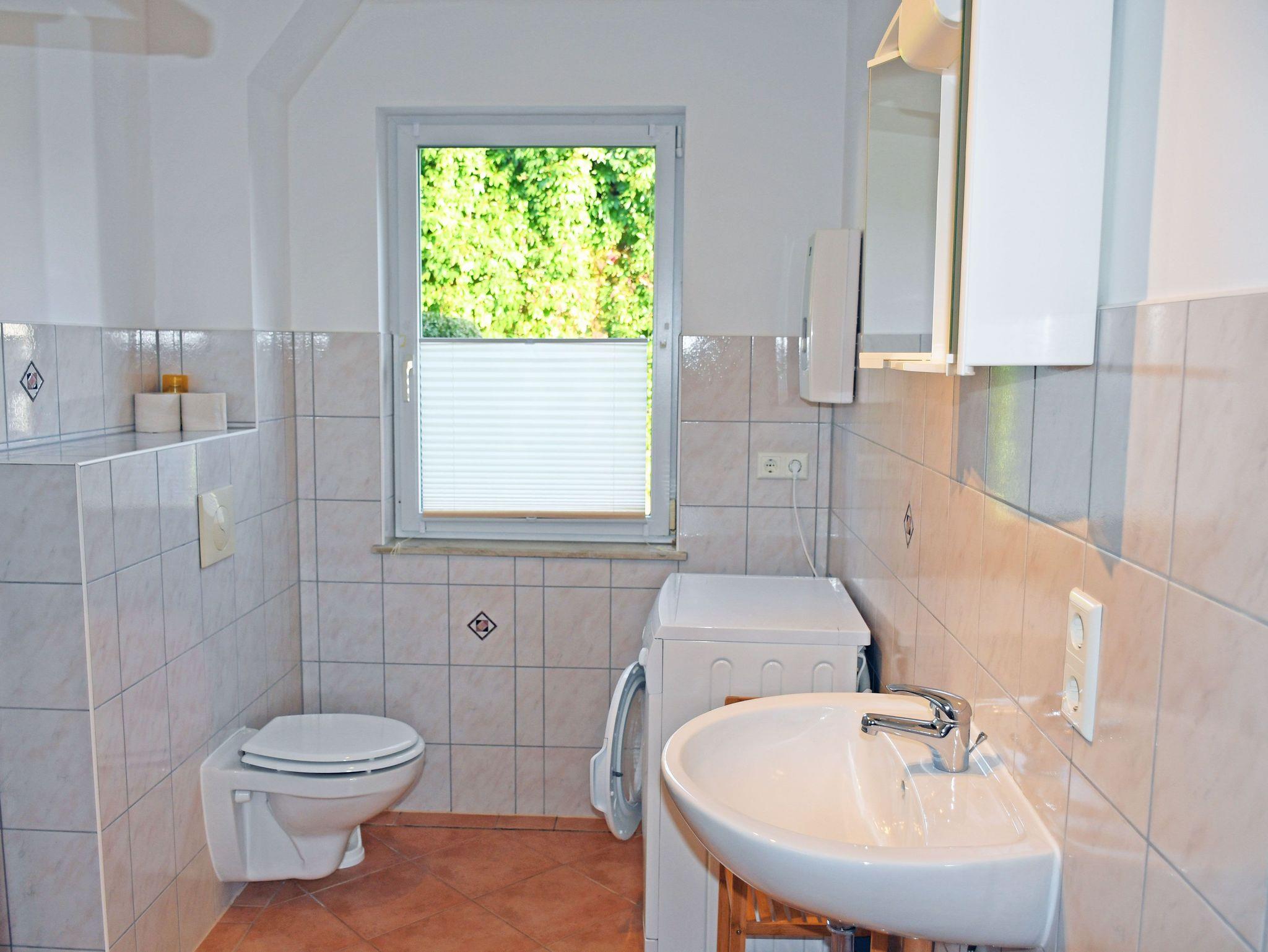 Ebenfalls im Erdgeschoss liegt auch das erste Bad mit Dusche und WC und Tageslicht.