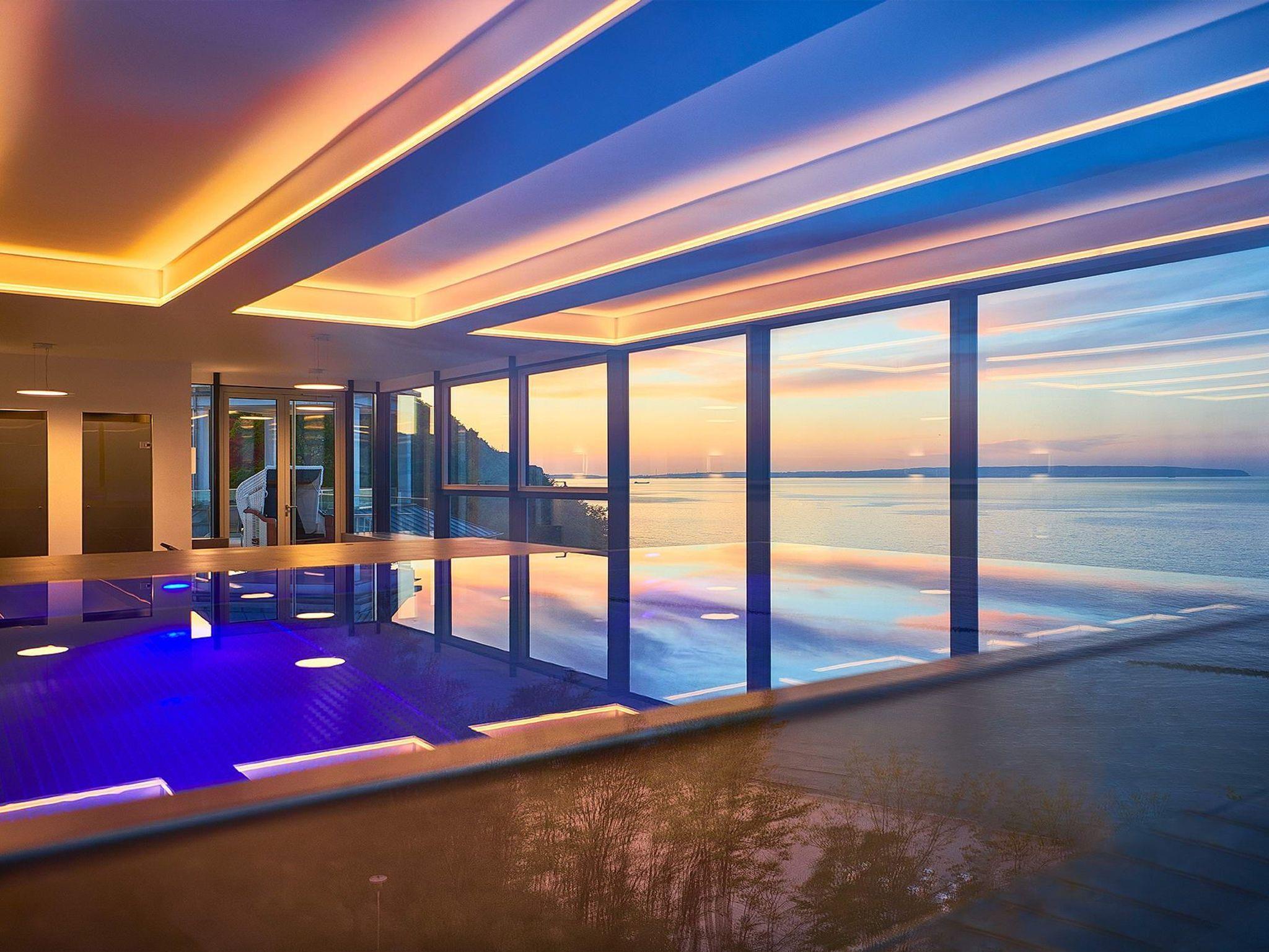 Die Ferienwohnung befindet sich in der ersten Reihe. Hier erfahren Sie den puren Luxus, sei es von der Dachterrasse, mit einem gigantischen Meerblick auf die Selliner Seebrücke aus dem beheizbaren Pool oder den beiden Saunen.