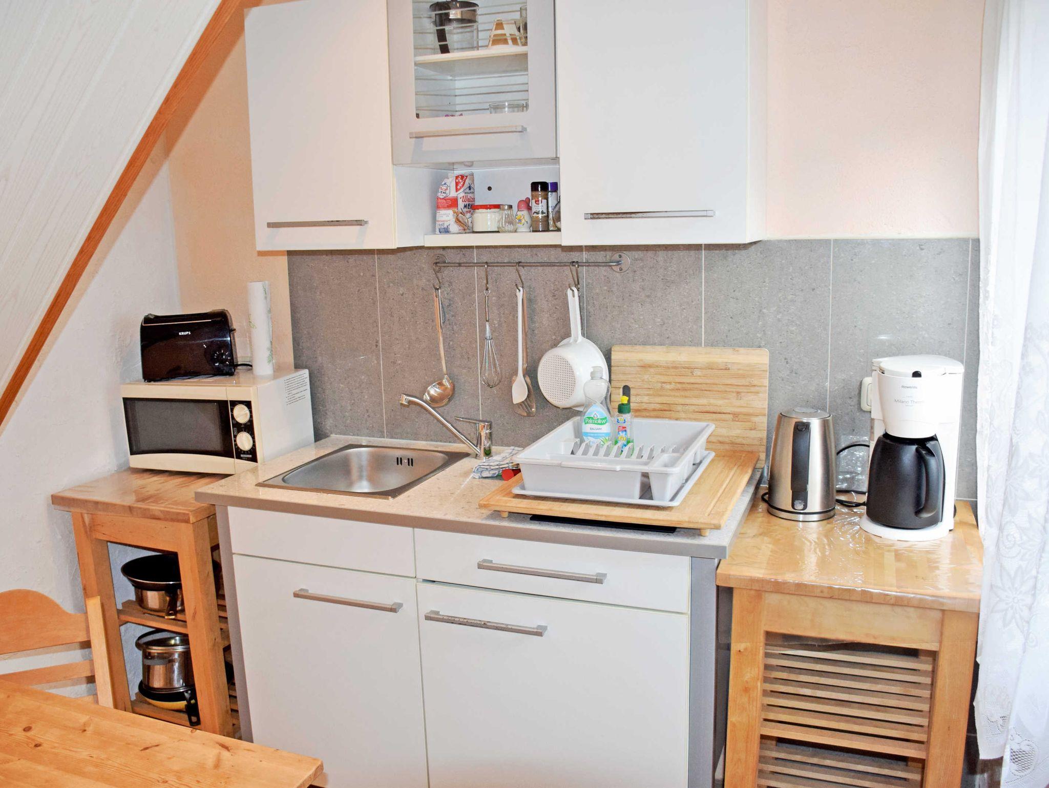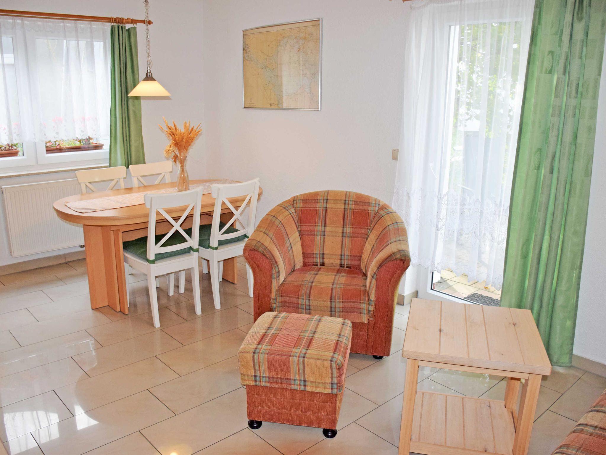 Das Ferienappartement ist ca. 45 qm groß, hat Platz für maximal 2 Erwachsene und 2 Kinder. Es wurde liebevoll, modern sowie komfortabel eingerichtet. In diesem Appartement befindet sich ein Wohnzimmer mit einer Schlafcouch (für zwei Personen) und einer Essecke sowie einer kleinen Küchenzeile (zwei Plattenherd) im Erdgeschoss. Im Schlafzimmer befindet sich ein Doppelbett sowie ein zusätzliches Einzelbett. Das Bad erreichen Sie über eine Treppe in das Obergeschoß. Das Bad ist ausgestattet mit einer Dusche / WC. Eine Mirkrowelle können Sie auf Anfrage beim Vermieter erhalten. Ein Kinderreisebettchen sowie ein Hochstuhl können ebenfalls nur auf direkte Anfrage beim Vermieter gestellt werden.