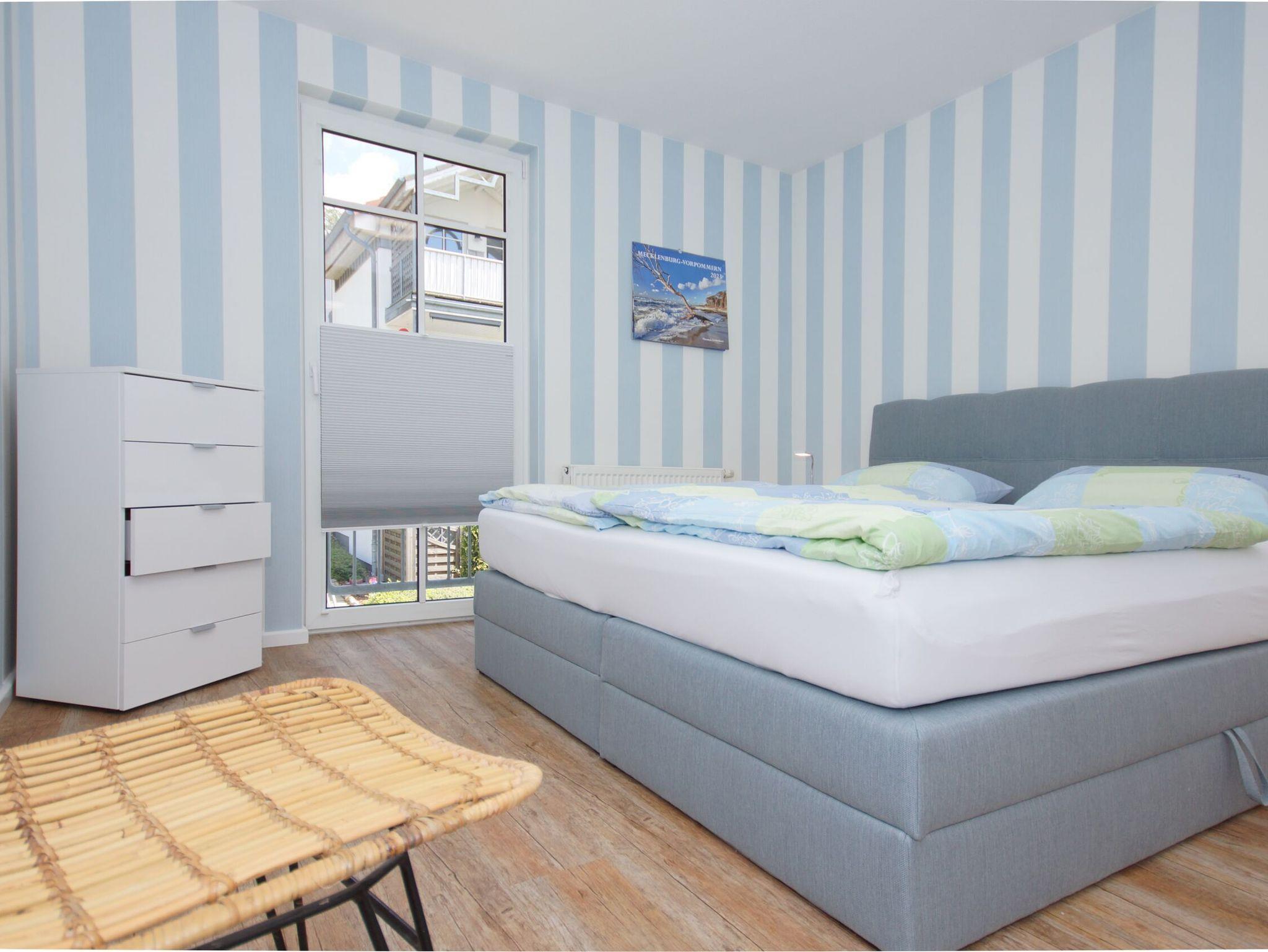 Von hier aus erreichen Sie den sonnigen Balkon. Die für Sie zur Verfügung gestellten komfortablen Gartenmöbel eignen sich zum Sonnenbaden oder für ein angenehmes Frühstück an der frischen Ostseeluft. Ausfahrbare Markisen sorgen für die nötige Privatsphäre.