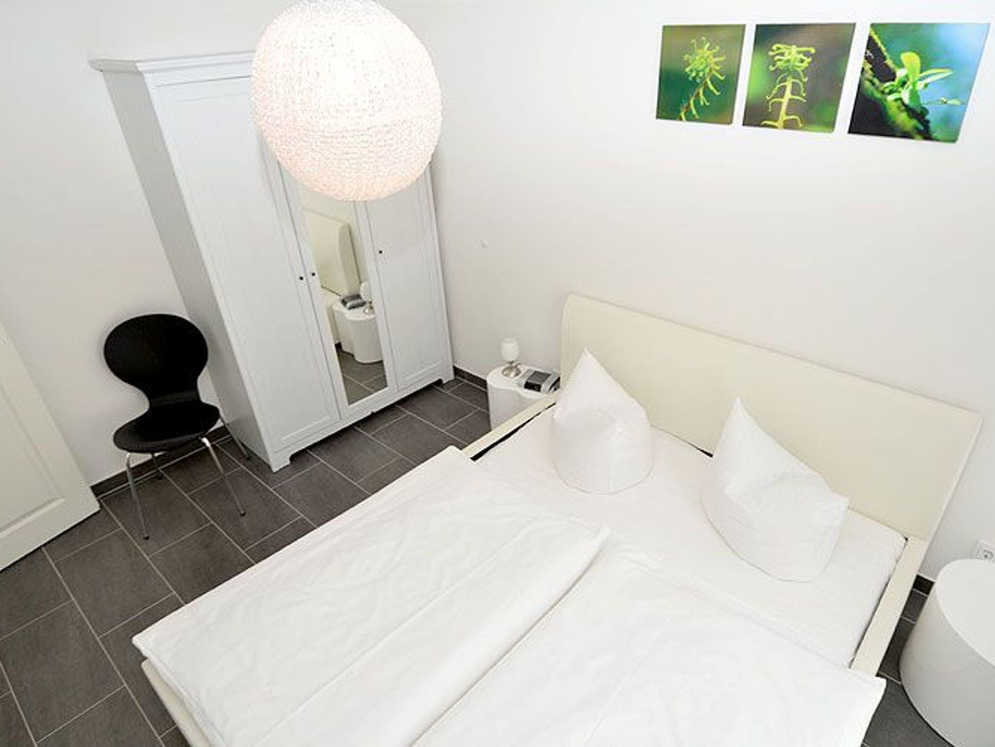 Das Appartement hat zwei Schlafzimmer. In einem der Schlafzimmer befindet sich ein Designer-Doppelbett (1,60 m) mit komfortabler 7-Zonen-Kaltschaummatratze; das zweite Schlafzimmer ist als Gäste- oder Kinderzimmer geeignet und hat ein Einzelbett (90 cm) mit ausziehbarer Bettschublade für eine weitere Schlafgelegenheit (90 cm).