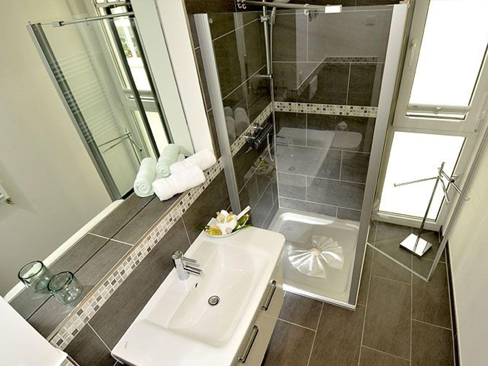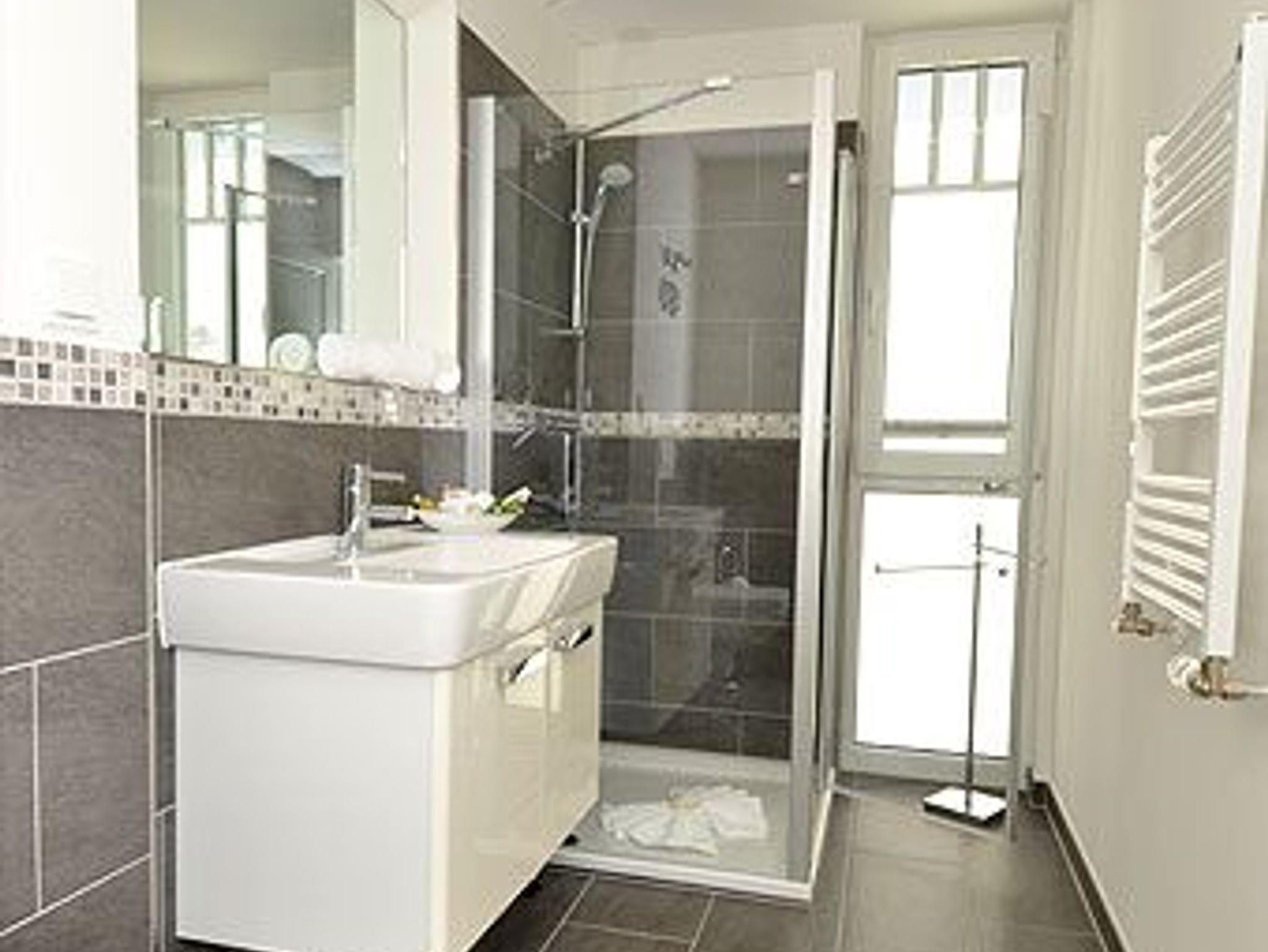 Ein modernes Duschbad mit verglaster Dusche und Handtuchwärmer ist natürlich ebenfalls vorhanden. Alle Räume sind gefliest und verfügen über eine Fußbodenheizung für eine gemütliche und behagliche Atmosphäre.