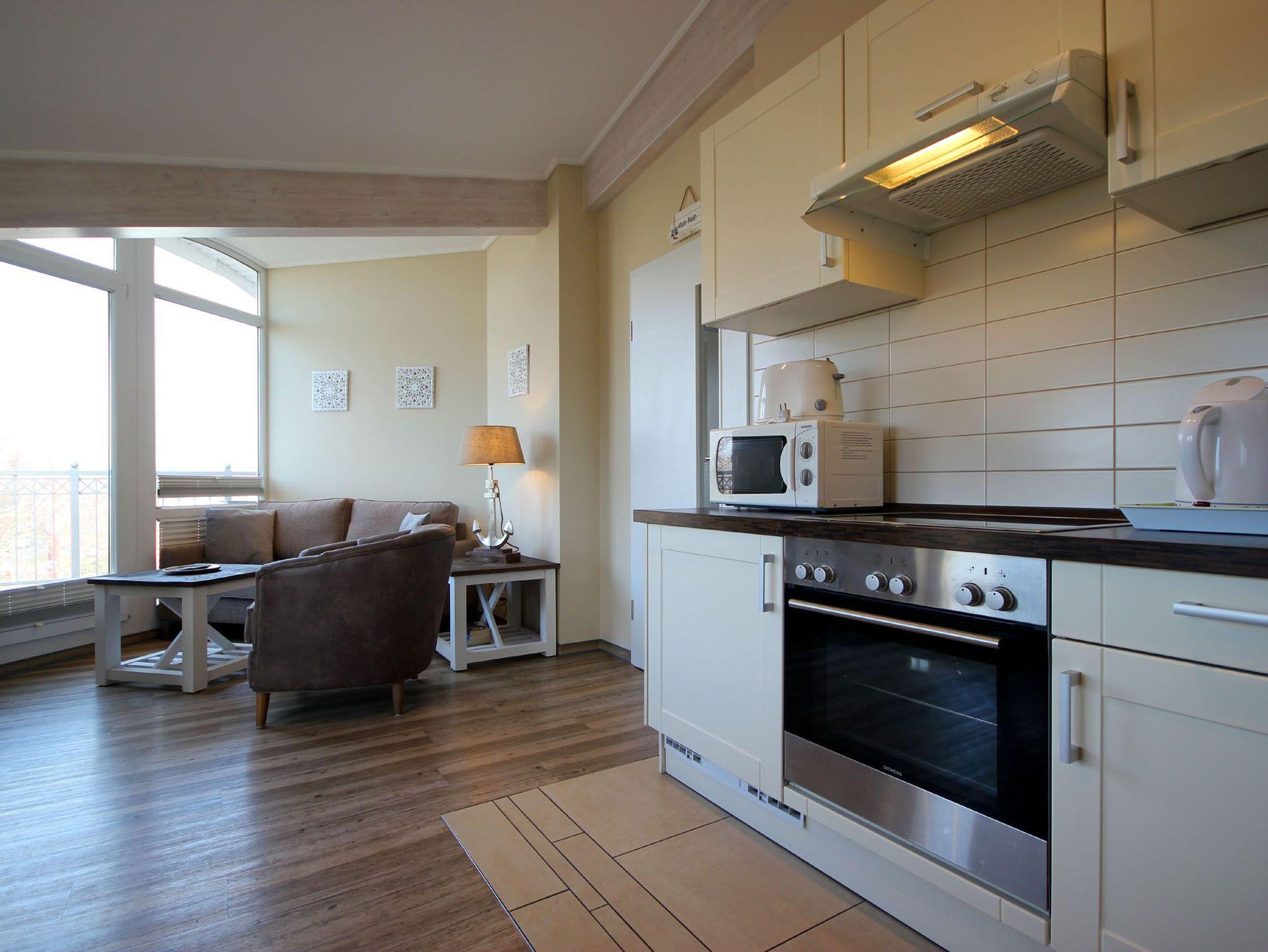 Ihre 2-Zimmer Ferienwohnung 65RB12 Leuchtturm mit Balkon befindet sich im 2. Obergeschoss und ist ca. 44 qm groß sowie für bis zu 2 Personen gut geeignet. Neben dem gemütlichen Wohnbereich mit Zugang zum Balkon mit Blick auf den Selliner See, gehört eine Sitzecke, ein Essbereich, Flachbild TV sowie WLAN zur Nichtraucherwohnung. Im Schlafzimmer erwartet Sie ein Doppelbett, ein zusätzlicher TV, ein Kleiderschrank sowie ein weiterer Zugang zum Balkon. Zudem können Sie eine voll ausgestattete und im Wohnbereich integrierte Küchenzeile mit Geschirrspüler, Backofen, Wasserkocher, Toaster, Kaffeemaschine sowie umfangreiches Küchengeschirr nutzen. Das moderne Badezimmer erwartet Sie mit Waschtisch, WC und Dusche. Einen Parkplatz sowie eine Fahrradunterstellmöglichkeit befinden sich direkt am Objekt.