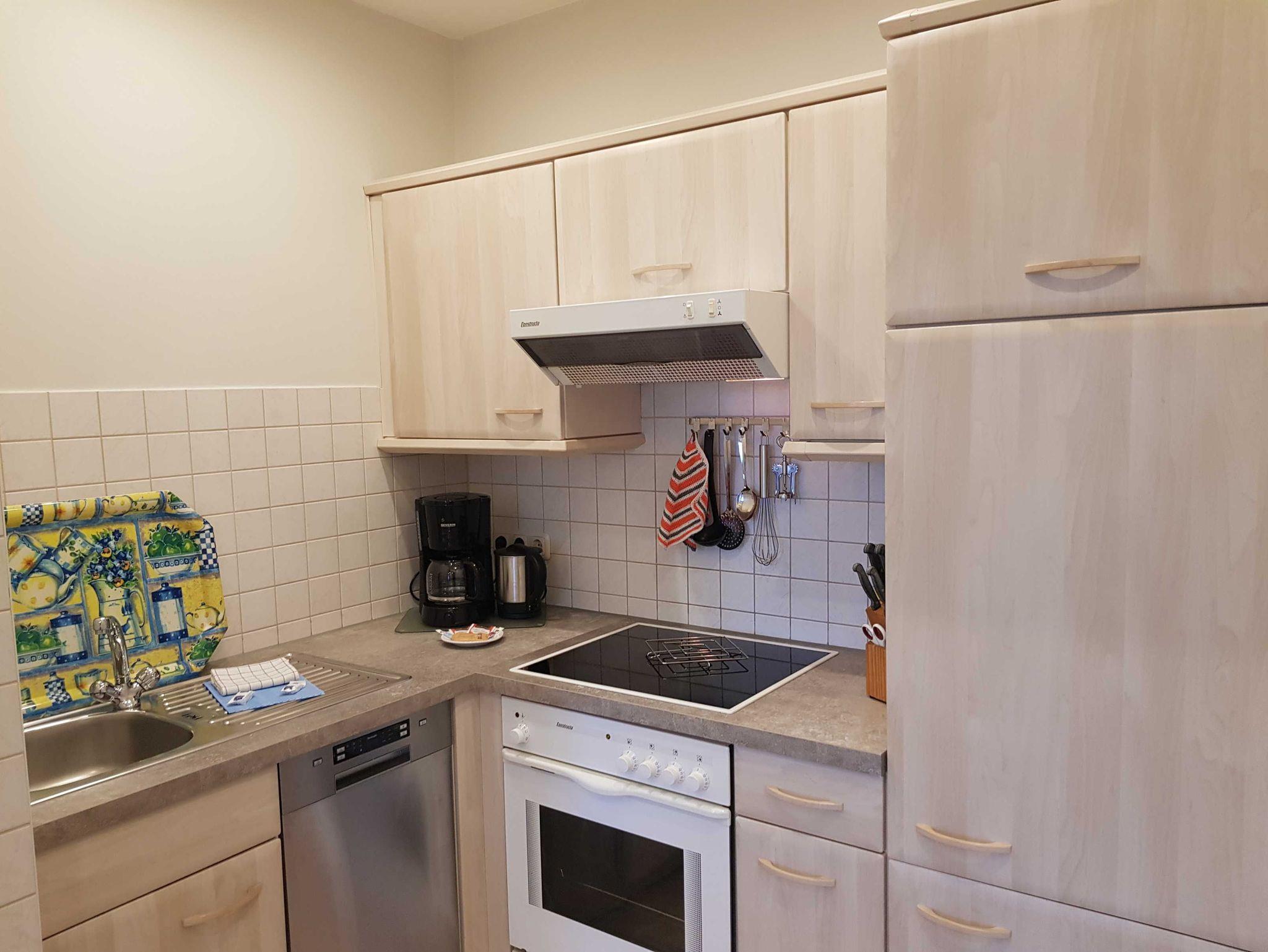 • Küche mit 4 Platten Cerankochfeld, Backofen und Geschirrspüler ,Kaffemaschine, Wasserkocher, Toaster.