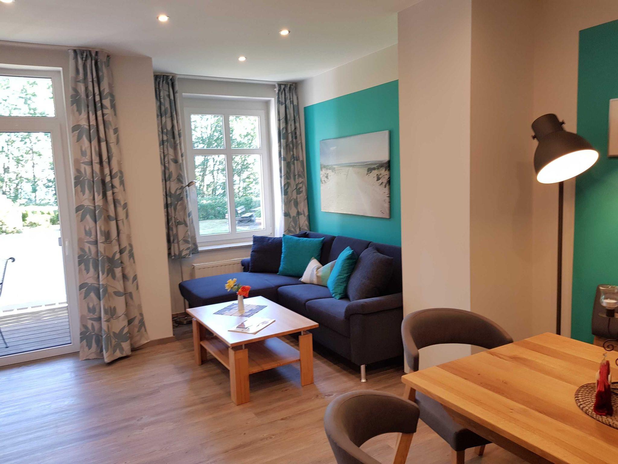 Sie haben eine gute Wahl getroffen. Die Residenz Seeblick ist ein modernes, im Bäderstil saniertes Appartementhaus direkt an der Ostsee. Es steht Ihnen ein 3 Zimmer Apartment mit Balkon in bevorzugter Lage zur Verfügung. Nur wenige Meter zum Strand von Sellin und zur Seebrücke, dem Wahrzeichen von Sellin sprechen für sich. Alle Wohnungen errreichen Sie barrierefrei mit einen Glasaufzug . In der Wohnung befindet sich ein freier Wireless Lan Internetzugang . Die Wohnung ist modern ausgestattet und verfügen über eine gut bestückte Küchenzeile mit Geschirrspüler und Backofen. Die Zimmer verfügen über Kabel-TV mit DVD Player und Stereoanlage mit CD Spieler. Unterstellmöglichkeiten für Ihre Fahrräder befinden sich am Haus . Für Ihre Wohnung steht ein Parkplatz zur Verfügung. Vom möbilierten Balkon haben Sie einen Zugang zum Garten. Eine Sauna mit Ruheliegen sowie Waschmaschine und Trockner stehen Ihnen in den Gemeinschaftsräumen gegen Gebühr zur Verfügung.