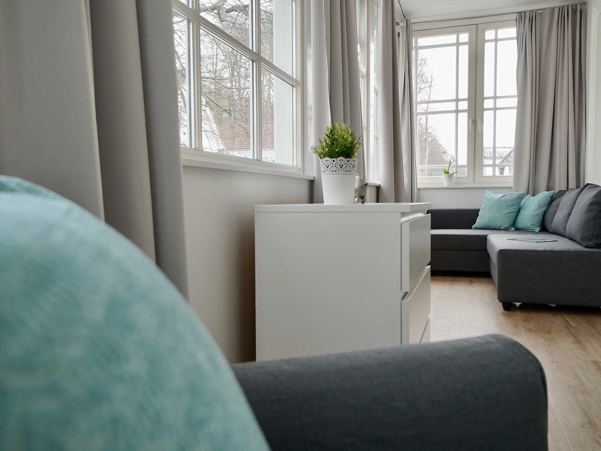 Im Komfort-Appartement Jasmund (A) mit ca. 53 - 60 m² finden bis zu 6 Personen Platz für einen schönen Urlaub.In dem modern eingerichteten Wohn- und Essbereich finden Sie ein gemütliches Sofa, das abends zu zwei Schlafmöglichkeiten umfunktioniert werden kann. Von dort aus haben Sie auch den direkten Blick auf den Flachbild-Fernseher, der gerade in den Abendstunden gut für Ihre Unterhaltung sorgen kann. Ein kostenloser WLAN-Anschluss und ein SodaStream ist nutzbar. Am großen Esstisch finden alle Gäste dieses Appartements Platz, nachdem in der angrenzenden Landhaus-Küchenzeile, die sich auch in diesem Raum befindet, die Urlaubsmahlzeit zubereitet wurde. Hier finden Sie neben einem Cerankochfeld und Backofen auch die Kaffeemaschine, Wasserkocher und Toaster. An dieses Zimmer grenzt ein gemütlich eingerichteter Wintergarten, in dem Sie über Tag ein gutes Buch genießen können. Nachts bietet der Wintergarten zusätzlich zwei Schlafmöglichkeiten. Im separaten Schlafzimmer können es sich weitere 2 Personen in einem Doppelbett gemütlich machen. Ein Kinderreisebett (bis zwei Jahren) kann bei Bedarf augestellt werden.
