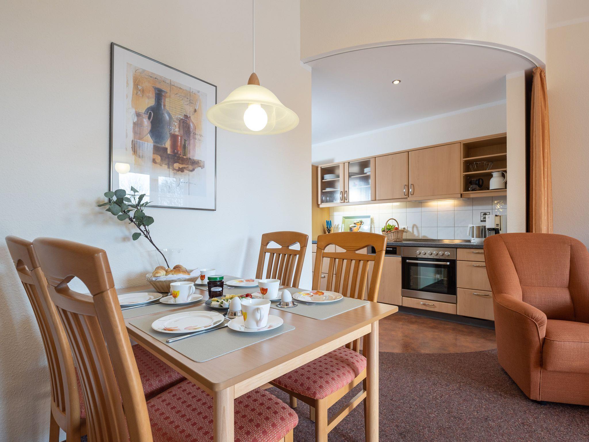 Die freundlich eingerichtete Wohnung 18 in der Ferienanlage Margaretha ist ca. 58 m² groß und für bis zu 4 Personen ausgelegt.