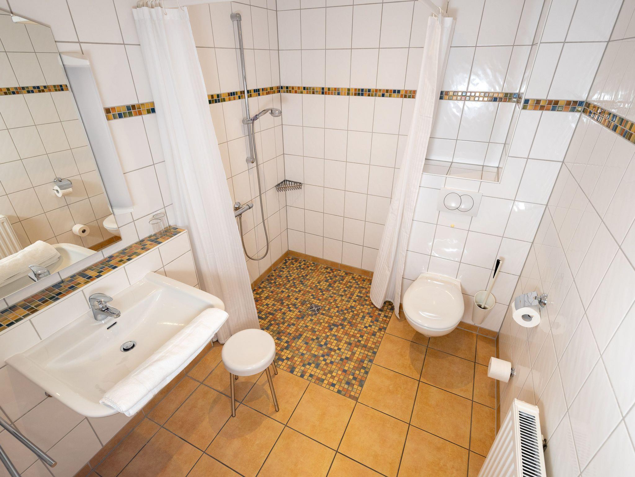Die behindertenfreundliche Nichtraucherwohnung befindet sich im Hinterhaus der Ferienanlage Margaretha. Zur Anlage gehört pro Wohnung ein Parkplatz auf dem Hof, sowie ein gemeinschaftlicher Fahrradraum.